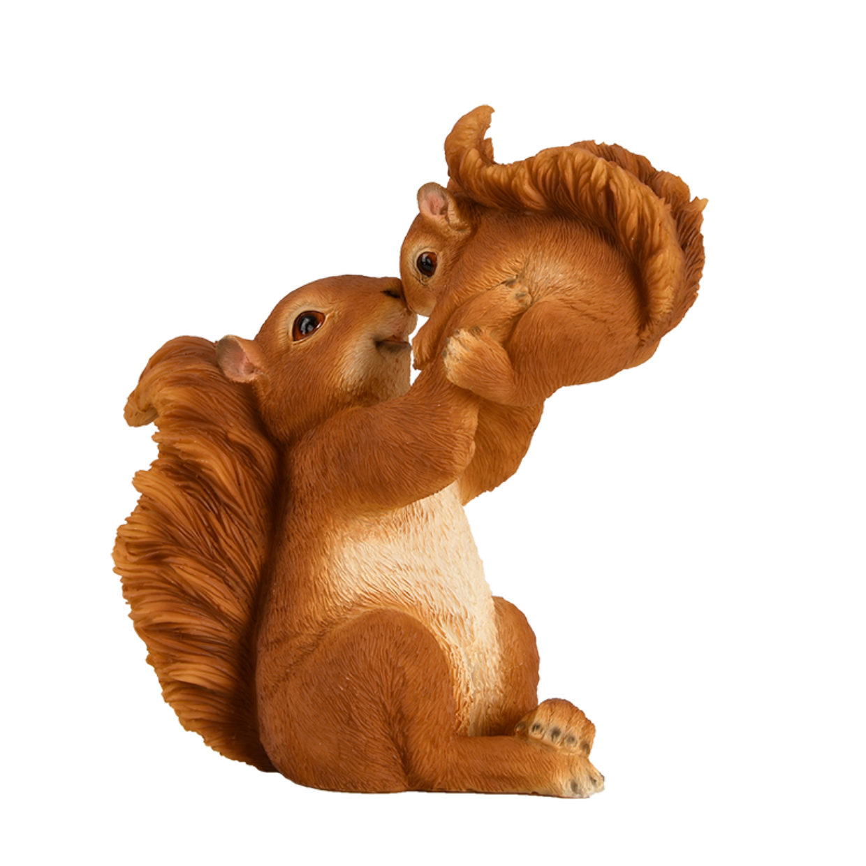 Deze eekhoorn met baby is bijna niet van echt te onderscheiden en zijn gemaakt van polyresin. Geschikt voor binnen en buiten, vorstbestendig en voorzien van een UV lak.