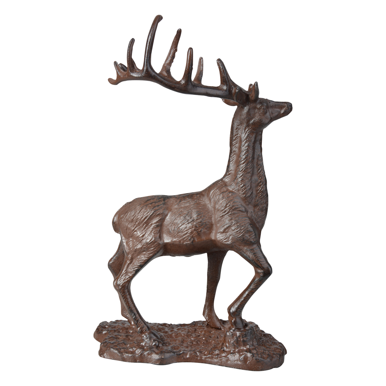 De Edelherten worden ook de koningen van het bos genoemd. Kenmerkend voor dit hert is uiteraard zijn gewei. Dit decoratief gietijzeren dierfiguur is per stuk met de hand gegoten volgens eeuwenoud vakmanschap en traditie.