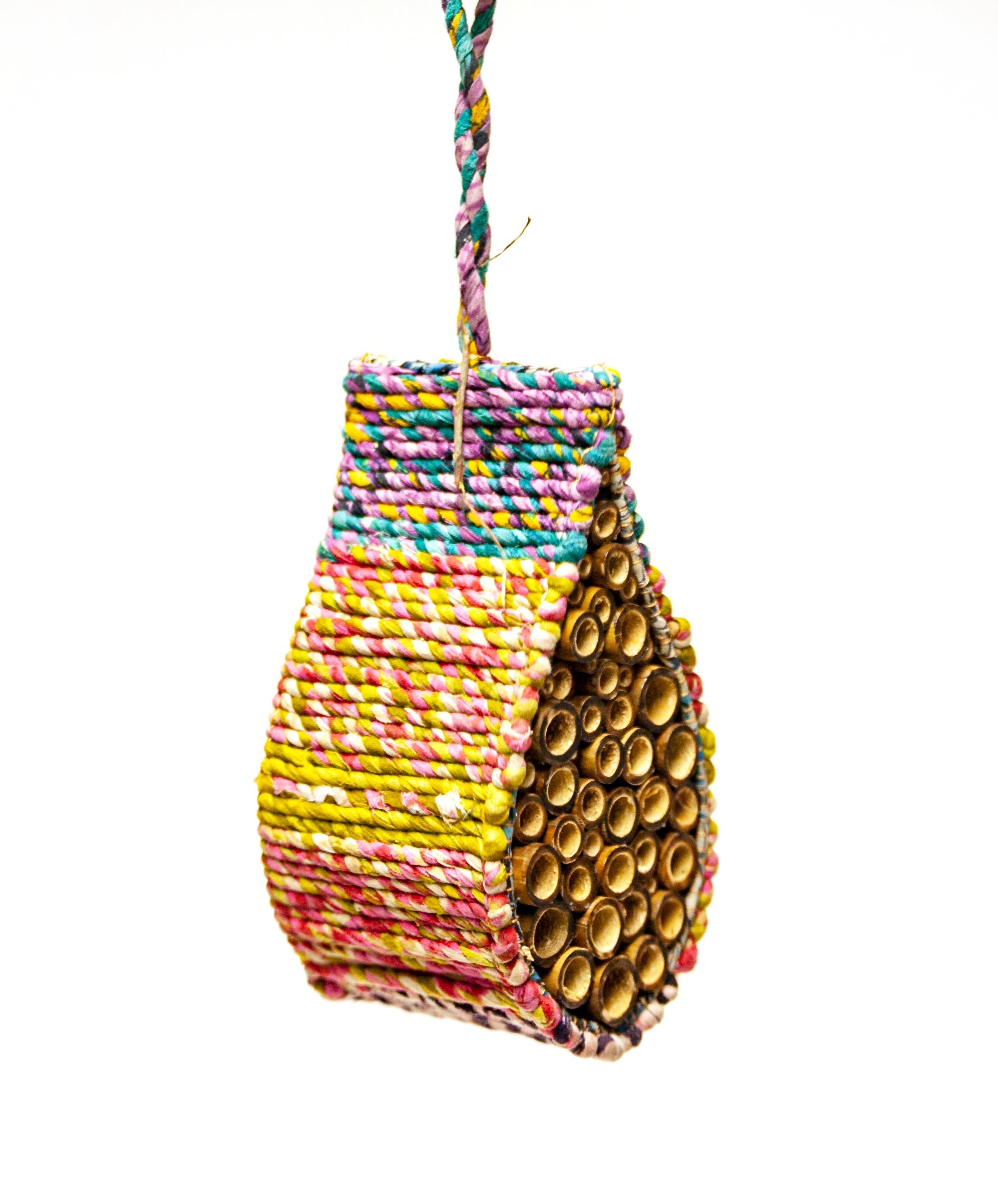 De Artisan Bee Nesters zijn gemaakt van gerecyclede sari's en zijn Fairtrade-producten die de kansarme vrouwen in Bangladesh helpen die ze met de hand maken.
