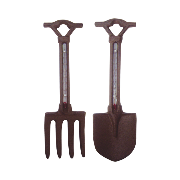 Tuingereedschap mag in geen enkele tuin ontbreken. Deze spade en greep geven ook de temperatuur weer van -20° tot +50° celsius. Deze decoratief gietijzeren gereedschappen zijn per stuk met de hand gegoten volgens eeuwenoud vakmanschap en traditie.