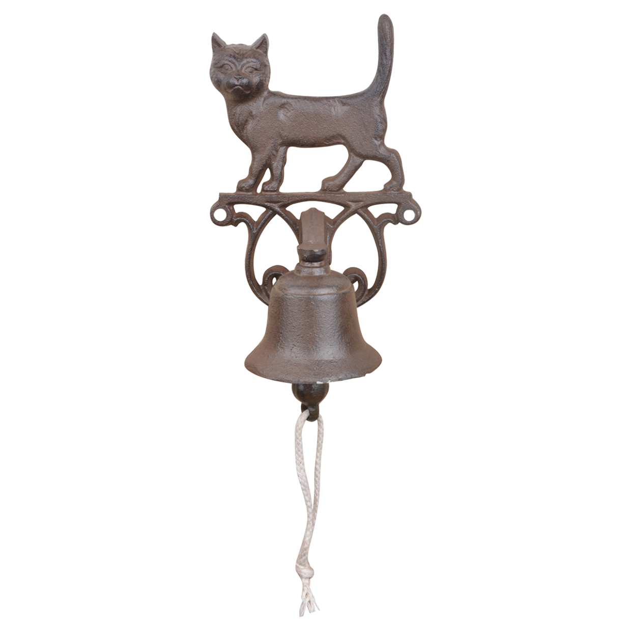 Hang de traditionele gietijzeren deurbel met decoratieve poes naast de voor- of achterdeur zodat de gasten van zich kunnen laten horen als ze binnentreden. Deze rustieke gietijzeren deurbel is met de hand gegoten volgens eeuwenoud vakmanschap en traditie.