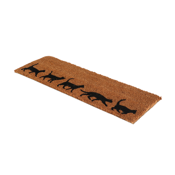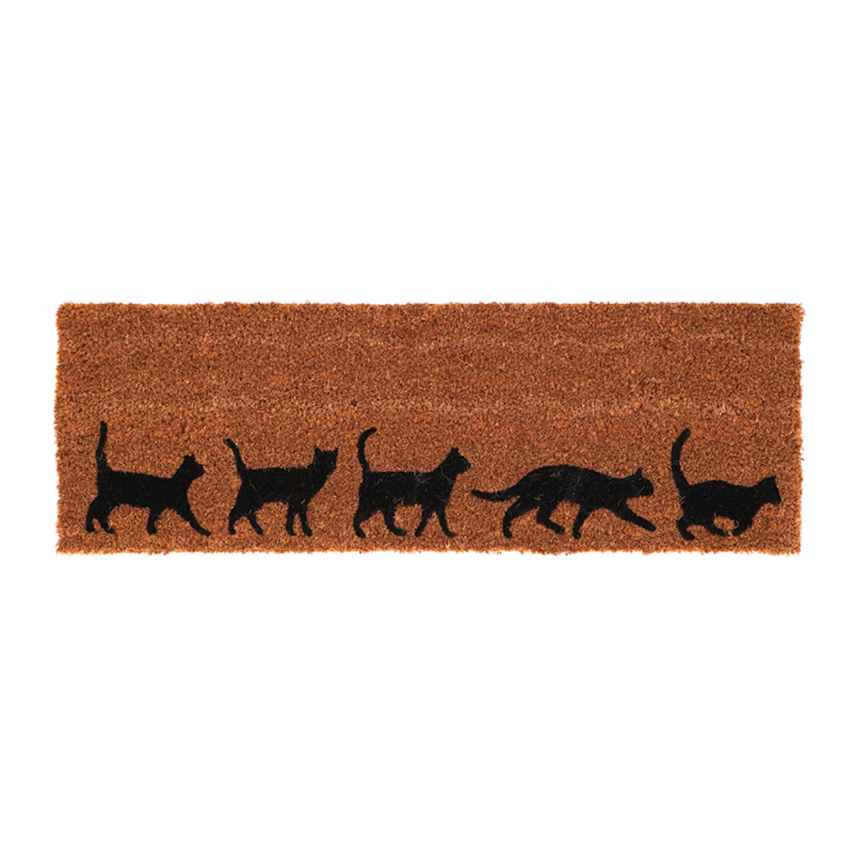 Deze kokosmat met een opdruk van meerdere katten fleurt iedere entree op. De sterke kokosvezels van deze mat zorgen ervoor dat de zolen van schoenen en laarzen goed schoongeveegd kunnen worden. De deurmat is voorzien van een pvc-rug en blijft hierdoor goed liggen.