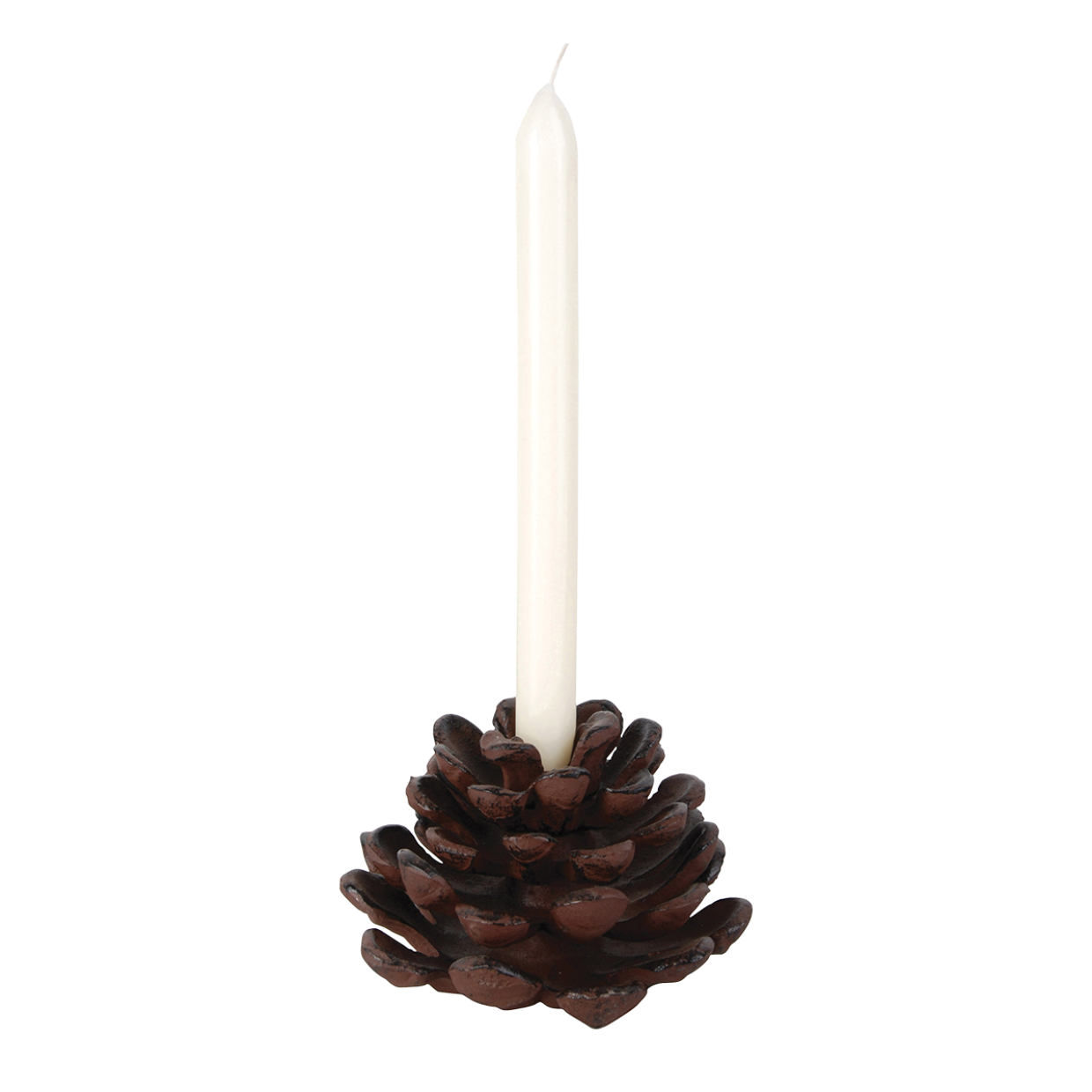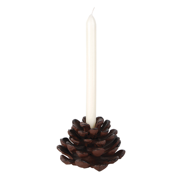 De structuur van een dennenappel leent zich zeer goed voor een kandelaar. De open schubben van deze kegelvrucht creëeren een bijzonder en sfeervolle houder van de kandelaar in het midden. Deze decoratief gietijzeren houder is met de hand gegoten volgens eeuwenoud vakmanschap en traditie.