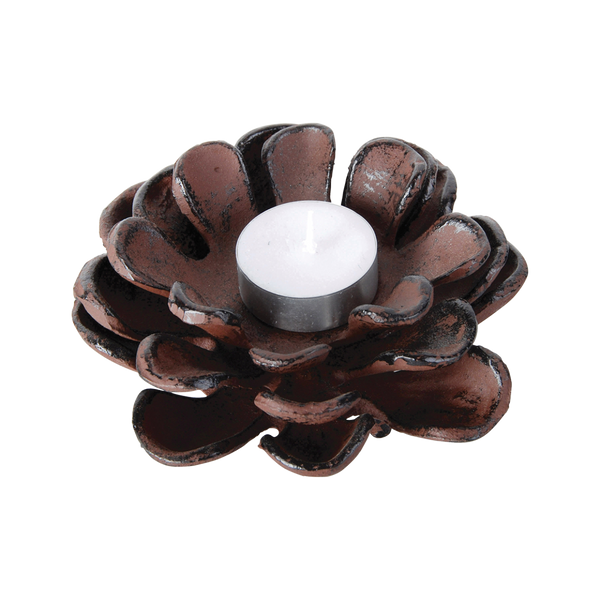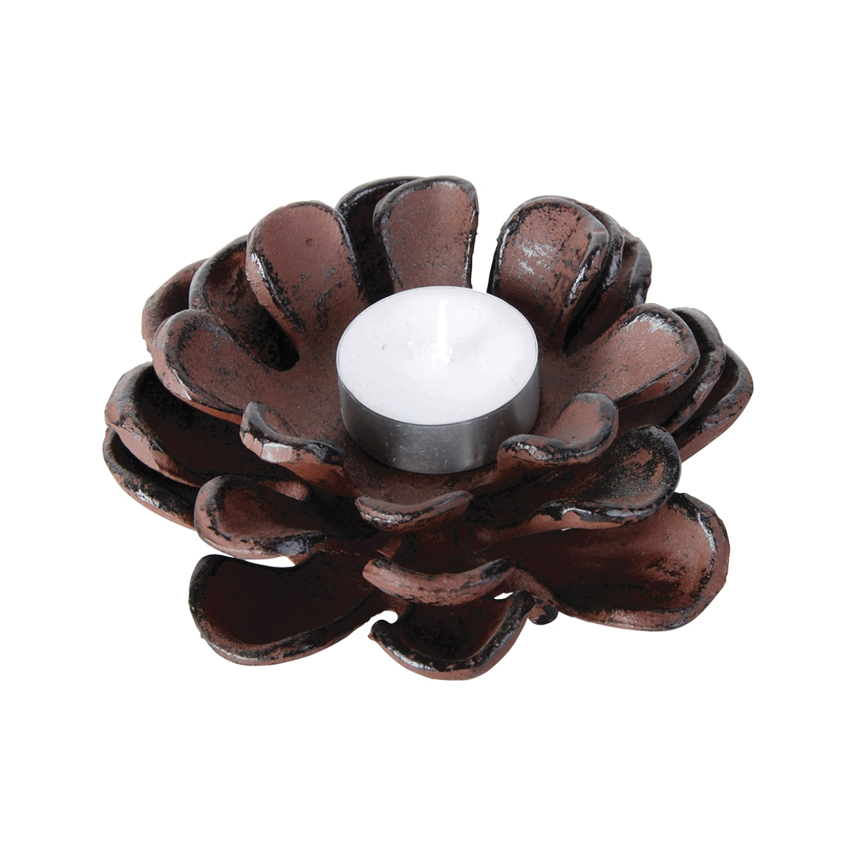 De structuur van een dennenappel leent zich zeer goed voor een theelichthouder. De open schubben van deze kegelvrucht creëeren een bijzonder en sfeervol licht dankzij het theelicht in het midden. Deze decoratief gietijzeren houder is met de hand gegoten volgens eeuwenoud vakmanschap en traditie.