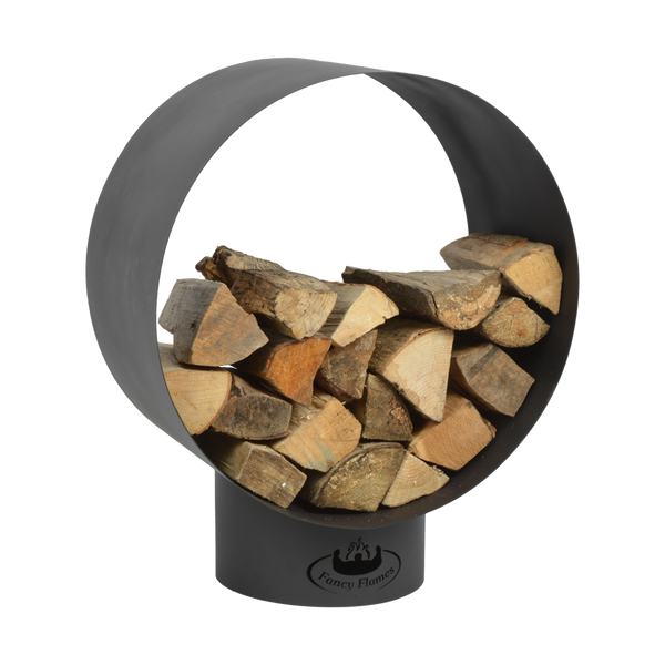 Geef de tuin een beetje flair met deze moderne ronde houtopslag op stabiele voet. Ook geschikt voor binnenshuis.