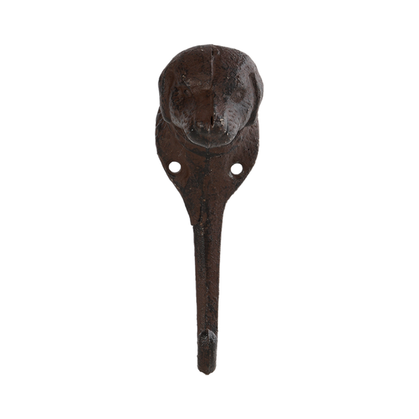 Deze rustieke gietijzeren wandhaak met hondenkop kan dankzij de twee ophanggaten eenvoudig gemonteerd worden. Aan de haak kan gereedschap worden opgehangen maar uiteraard ook allerlei andere spullen. Deze is per stuk met de hand gegoten volgens eeuwenoud vakmanschap en traditie.