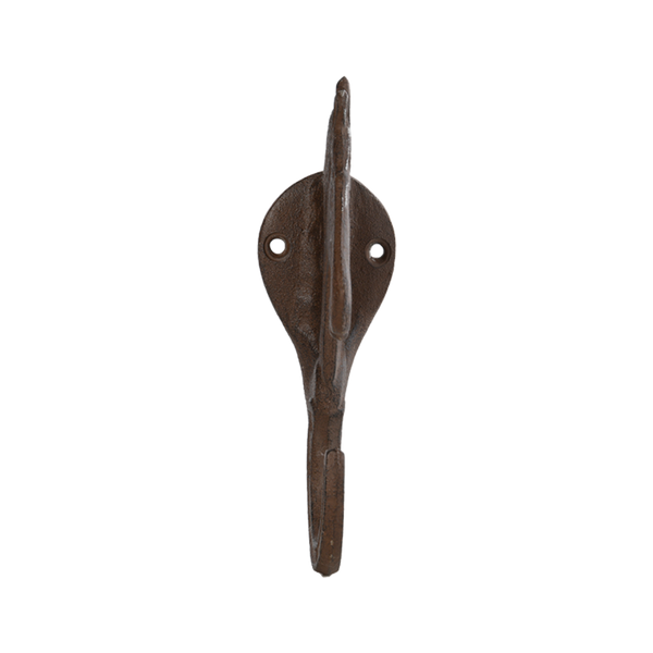 Deze rustieke gietijzeren wandhaak met een paardenhoofd kan dankzij de twee ophanggaten eenvoudig gemonteerd worden. Aan de haak in de vorm van een hoefijzer kan gereedschap worden opgehangen maar uiteraard ook allerlei andere spullen. Deze is per stuk met de hand gegoten volgens eeuwenoud vakmanschap en traditie.