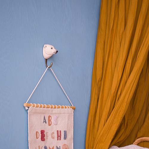 Deze haak is gegarandeerd de favoriet van het hele gezin. De ijsbeer past net zo goed in de gang als in de slaapkamer om alles op te hangen, van buitenkleding, dierenbenodigdheden of de badjas. Het komt goed tot zijn recht in de kinderkamer als betoverende en praktische decoratie - misschien hangen ze zelfs hun kleding op?
