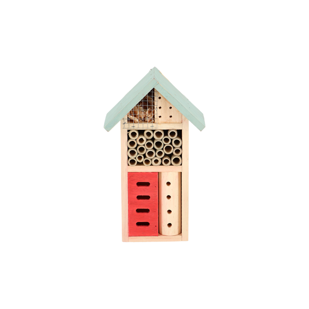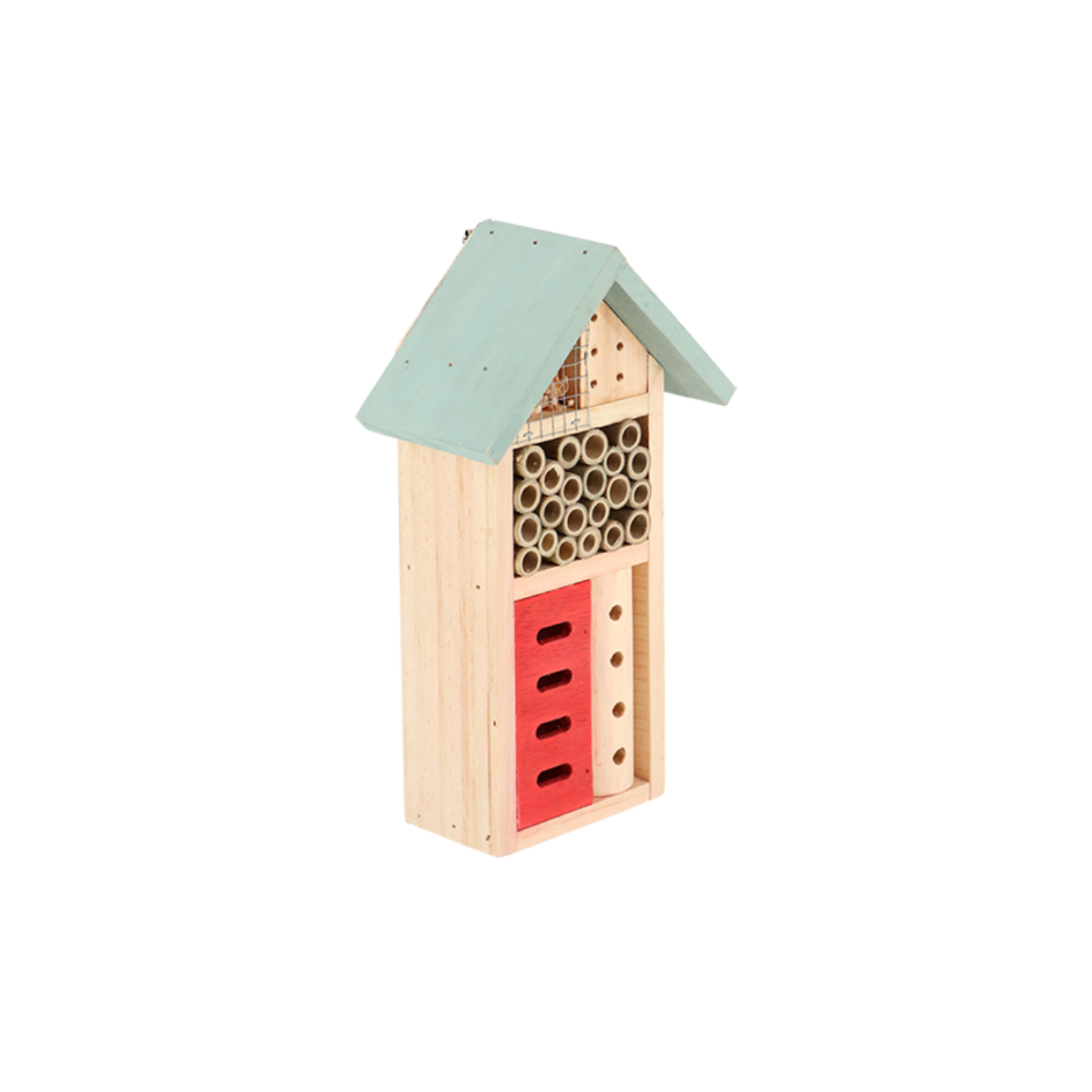 Insecten vervullen veel belangrijke taken in tuinen. Zij bestuiven planten en fungeren als natuurlijke ongediertebestrijder. Dit huis biedt solitaire bijen, lieveheersbeestjes en andere insecten een nest - en overwintersmogelijkheid.