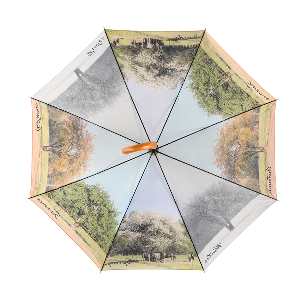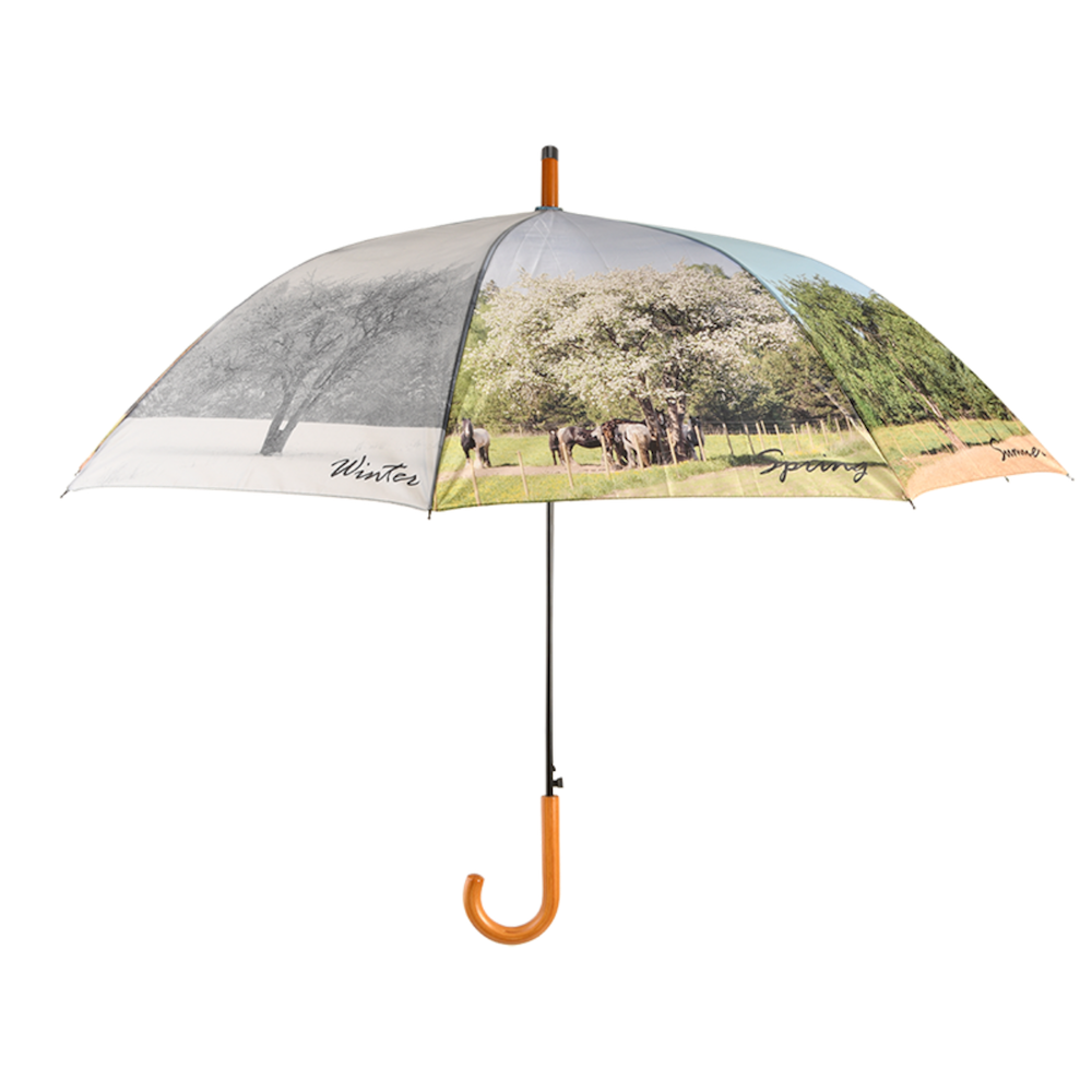 Met deze paraplu met print van ieder seizoen wordt zelfs een wandeling in de regen leuk. De paraplu is voorzien van een kiekeboe print met een hond en kat.