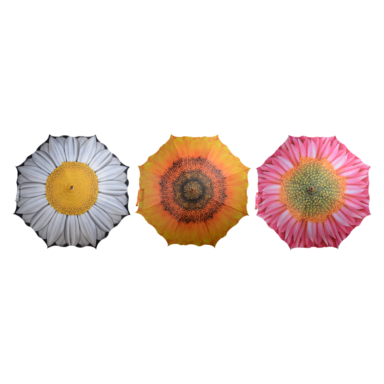 Fleur een regenachtige dag op met deze fotoprint paraplu. Zo wordt zelfs een wandeling in de regen een plezier. Het assortiment bevat 3 verschillende bloemen (zonnebloem, gerbera, margriet)