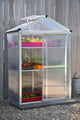 De Grow Station patiokas biedt duurzaam kweekgemak voor een voordelige prijs. Deze patiokas is uitstekend geschikt voor het voorzaaien van gewassen of voor het houden van kruiden. Het stevige aluminium frame kan eenvoudig worden gemonteerd, waarbij de afdichting van 4 mm dik dubbelwandig polycarbonaat in het frame wordt gefixeerd voor een optimale bevestiging. Ideale kweekomstanigheden Het polycarbonaat heeft een isolerende werking en zorgt voor diffuus groeilicht in de patiokas. Zo worden ideale omstandigheden voor het ontwikkelen van gewassen gecreëerd. De Grow Station is voorzien van een dichte achterwand waardoor solitair plaatsen mogelijk is. Toegang wordt verleend door 2 draaideuren aan de voorzijde en 1 klepraam aan de bovenzijde van de kas. Het klepraam kan volledig worden geopend of windvast geborgd in 4 standen voor optimale beluchting. De zaaibakjes 9 stuks worden standaard meegeleverd. Lengte: 76,5 cm Breedte: 39,5 cm Nokhoogte: 101,5 cm Oppervlakte: 0,3 m²