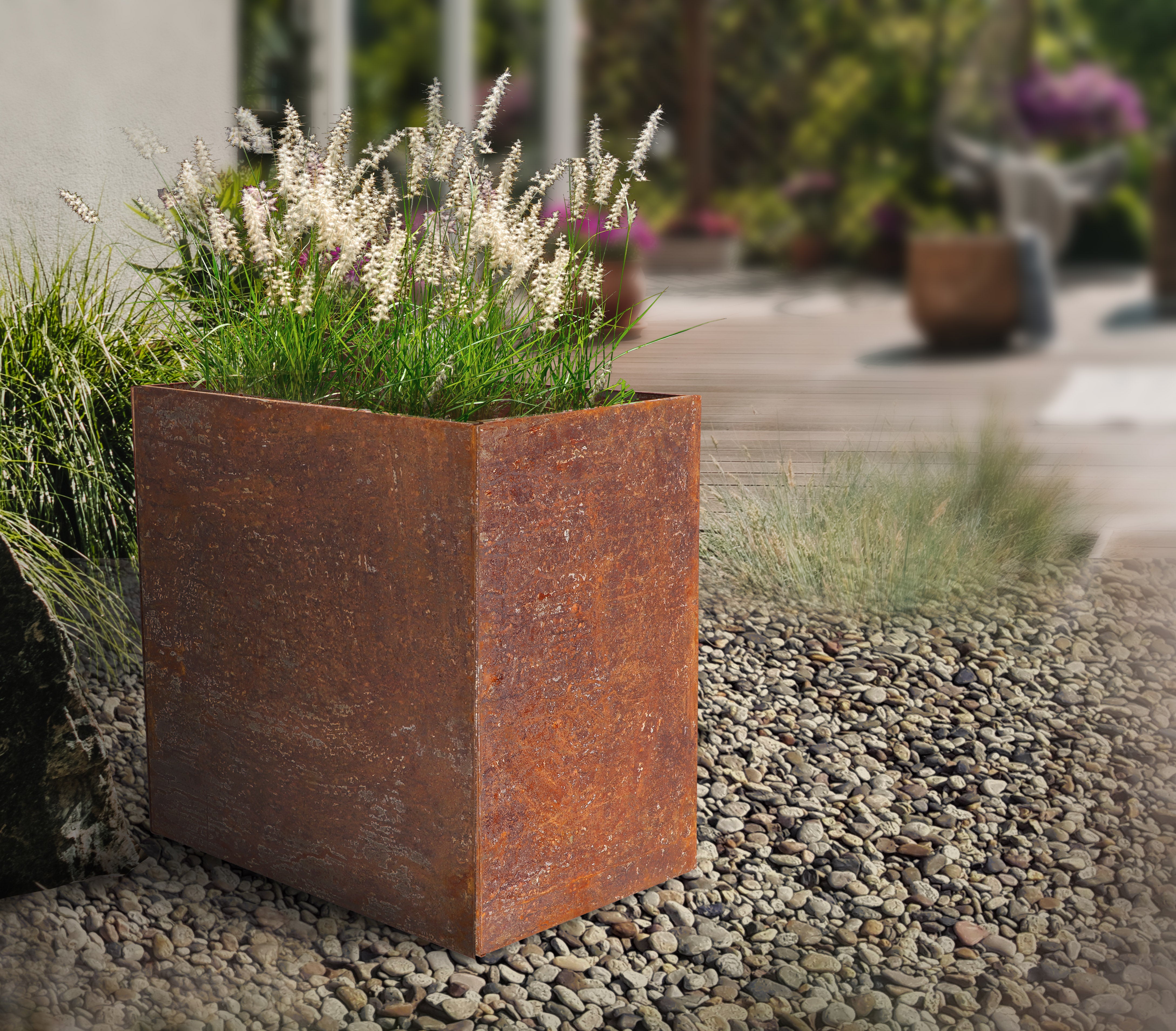 Deze roestkleurige plantenbak creëert een gezellige sfeer in de tuin en is een echte blikvanger. De rechthoekige plantenbak biedt veel ruimte voor bloemen, kruiden en planten. Na verloop van tijd zal de plantenbak door de invloed van weer en wind verder roesten, waardoor hij een mooie patina krijgt.
