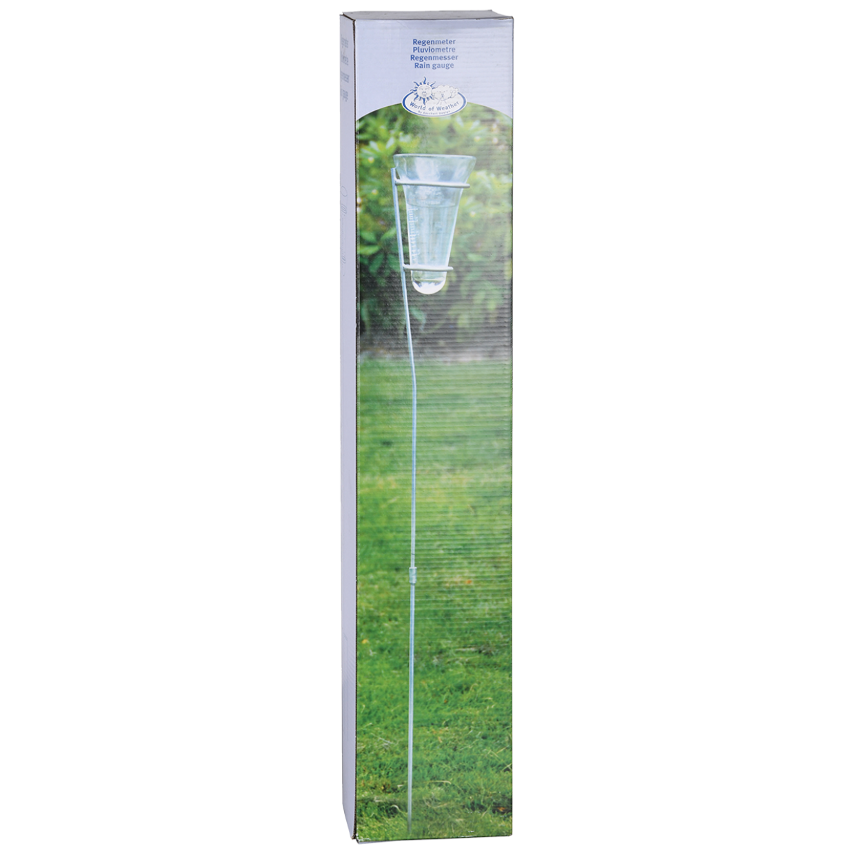 Hoeveel heeft het geregend? Met deze regenmeter is de hoeveelheid neerslag in een bepaalde periode na te kijken of bij te houden. Dankzij de glazen maatbeker van deze regenmeter kan regen opvangen worden, en zo kan er eenvoudig nagekeken worden hoeveel er in een bepaalde periode is gevallen. De regenmeter kan door middel van de meegeleverde grondpin overal simpel in de grond worden gestoken.
