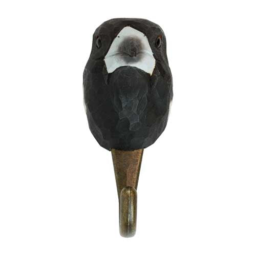 De met de hand gesneden haken zijn artistieke en toch authentieke afbeeldingen van dieren, vogels en planten. Elk hoofd is een echt houten handwerkstuk en is versierd met milieuvriendelijke verf met een unieke uitstraling, bevestigd aan een metalen haak. De bronskleurige haak kan een maximale belasting van 10 kg dragen. Bij alle haken zit een kort informatief boekje over de soort.