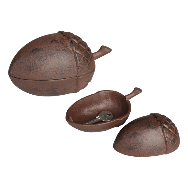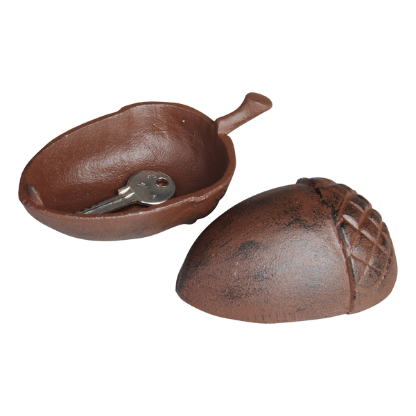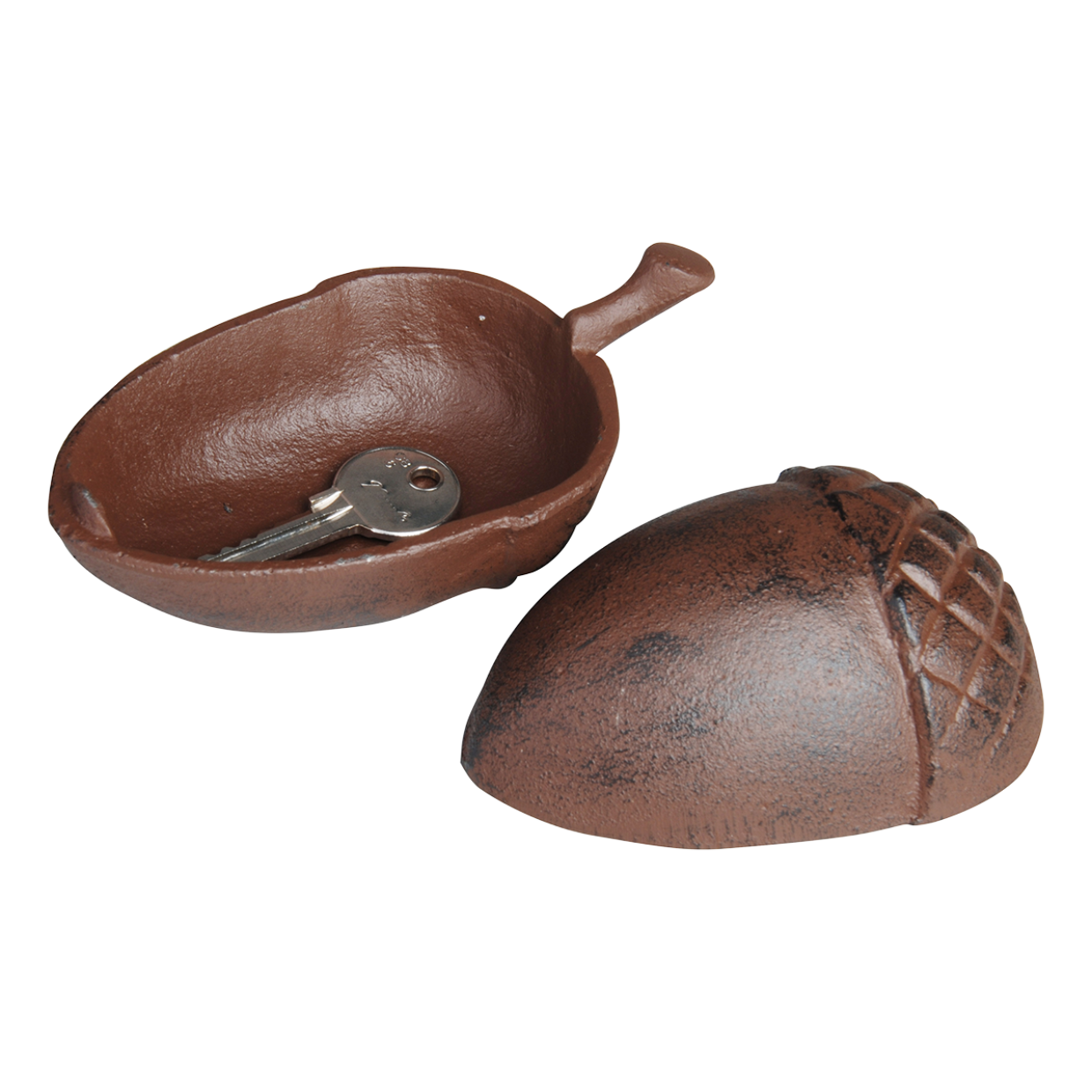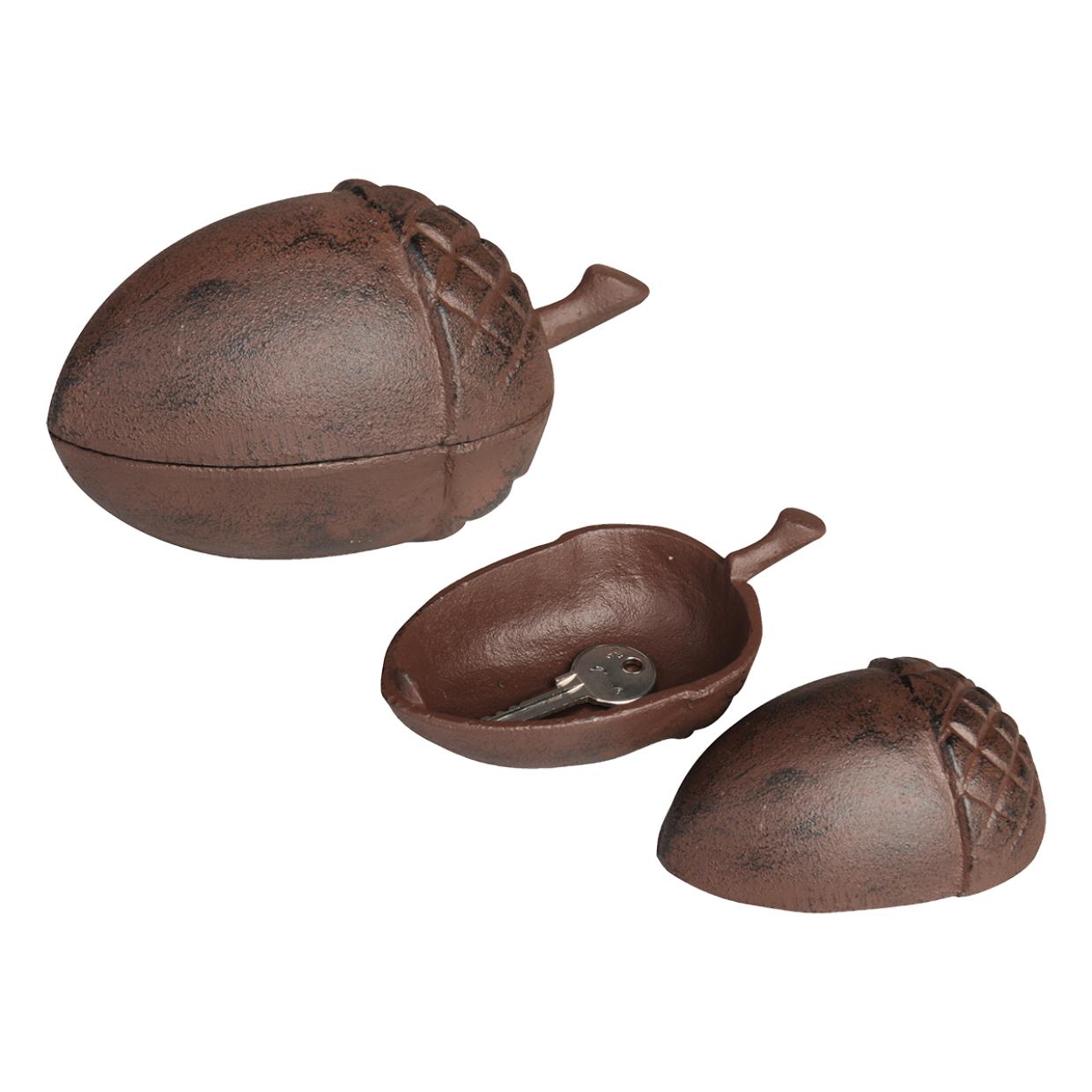 Nooit meer voor een dichte deur staan en altijd weten waar de reservesleutel ligt. Deze eikel is een goede verstopplek voor sleutels. De gietijzeren eikel is met de hand gegoten volgens eeuwenoud vakmanschap en traditie