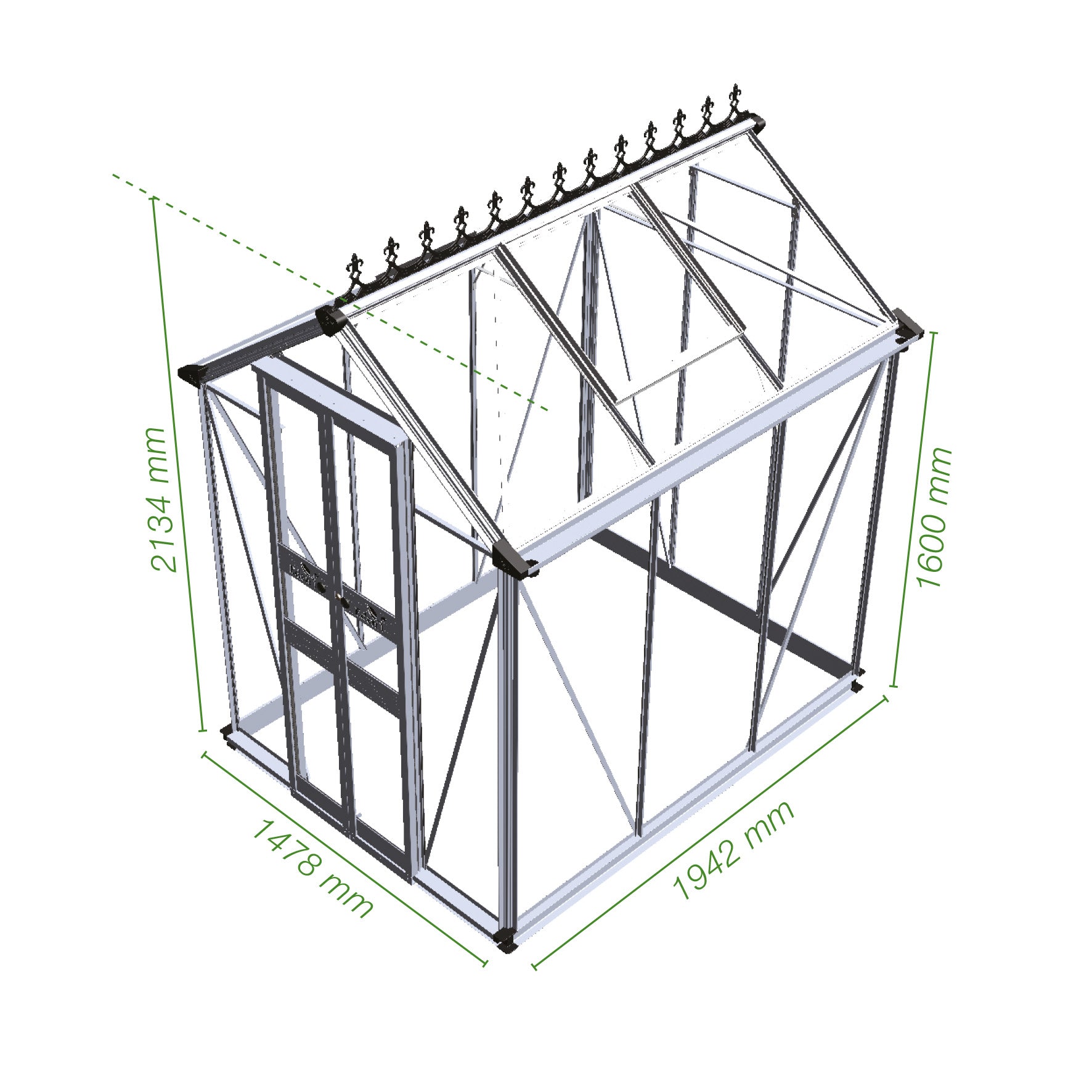 Zoekt u een kleine tuinkas met stahoogte? Kies dan voor de Birdlip! De kleinste hobbykas ter wereld. Ondanks de kleine afmetingen is deze vrijstaande kas standaard uitgevoerd met een drempelloze dubbele schuifdeur inclusief slot en een deurhoogte van 181 centimeter. U gaat dus niet gebukt de kas in! Voor de extra brede goot met een breedte van 80mm worden gratis 2 regenpijpen met een diameter van 40mm meegeleverd. Kleinste hobbykas ter wereld met een deurhoogte van bijna 2 meter Drempelloze dubbele schuifdeur, inclusief slot Gratis bijpassende fundering In blank, zwart of groen gecoate uitvoering Geïntegreerde kweektafels en schappen leverbaar Engelse kwaliteit, sinds 1936 Gratis bijpassende fundering Voor een stabiele en sterke basis is een funderingsrand noodzakelijk. De Birdlip wordt standaard gratis geleverd met een aluminium funderingsrand van 8cm hoog. Indien u kiest voor een zwart of donkergroen gecoate kas wordt ook de fundering in deze kleur meegeleverd. Handige optie voor hang- en klimplanten De sterke nokbalk biedt de mogelijkheid voor het bevestigen van zgn. planthangers. Met deze optioneel verkrijgbare accessoire kunt u planten in hangpotten ophangen of het touwtje bevestigen waarlangs de klimmende groenten kunnen groeien zoals tomaten en komkommers. Ruime keuze in afdichting De Birdlip kas biedt keuze uit 3 soorten afdichting: 3 mm dik tuinders- of veiligheidsglas en 6 mm polycarbonaat. Het tuindersglas wordt met behulp van glasklemmen gefixeerd aan het kasframe, waarbij het tuindersglas ‘dakpansgewijs gestapeld’ wordt aangebracht. Indien u kiest voor veiligheidsglas of polycarbonaat, wordt de afdichting gefixeerd met kunststof beglazingsstrips. De voordelen per type afdichting op rij: Tuindersglas: voordelig in prijs en eenvoudig te vervangen bij eventuele breuk. Veiligheidsglas: geleverd in lange ruiten en tot 6 keer sterker dan tuindersglas. Polycarbonaat dubbelwandig: licht van gewicht, onbreekbaar en heeft een beter isolerende werking dan glas. Maatvoeringen Birdlip 44 1,8 m2: 148 x 132cm b x l / 160 / 213cm goot- / nokhoogte  Birdlip 64 2,6 m2: 148 x 194cm b x l / 160 / 213cm goot- / nokhoogte  Birdlip 84 3,4 m2: 148 x 256cm b x l / 160 / 213cm goot- / nokhoogte De goot- en nokhoogte zijn inclusief de hoogte van de gratis meegeleverde fundering. Modern zwart of klassiek donkergroen? Het frame van de Birdlip is standaard leverbaar in een blanke uitvoering. Voor een meer luxueuze uitstraling en / of eenheid met de omgeving waarin de kas wordt geplaats is deze kas leverbaar in een zwarte of klassiek donkergroen gecoate uitvoering. Geïntegreerde kweektafels en schappen Voor iedere uitvoering is een specifieke kweektafel of kweekschap optioneel verkrijgbaar in de kleuren blank, zwart en groen. In uitstraling, kwaliteit en duurzaamheid zijn de accessoires gelijk aan het frame van de Birdlip. De kweektafels hebben een diepte van 40 cm, de schappen hebben een diepte van 18,2 cm. Levering is inclusief bevestigingsmaterialen. Goede beluchting Een goede beluchting is van levensbelang in de kas. Daarom is de Birdlip voorzien van 1 dakraam in model 44 en 2 dakramen in de twee grootste modellen; 64 en 84.Voor optimaal gebruiksgemak wordt het gebruik van een automatische raamopener geadviseerd. Deze raamopeners zijn temperatuurgevoelig en openen of sluiten het dakraam automatisch. Optioneel zijn Louvre ramen met 6 lamellen leverbaar welke zorgen voor extra beluchting in een zijgevel naar wens. Montage door een vakman De Birdlip hobbykas wordt geleverd als bouwpakket en is voorzien van een duidelijke handleiding. Het monteren van deze kas is geen moeilijke opgave, maar vergt wel tijd en aandacht. Tegen een vooraf vastgesteld tarief kan de montage worden uitbesteed aan een ervaren monteur.
