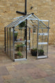 Zoekt u een ranke tuinkas met een flinke stahoogte? Kies dan voor de Burford. Deze vrijstaande kas wordt standaard uitgevoerd met een drempelloze enkele schuifdeur met slot. De schuifdeur is 65cm breed en heeft een hoogte van maar liefst 200cm. U gaat dus niet gebukt de kas in! Voor de extra brede goot met een breedte van 80mm worden gratis 2 regenpijpen met een diameter van 40mm meegeleverd. Keuze afdichting De Burford kas biedt keuze uit 3 soorten afdichting: 3 mm dik tuinders- of veiligheidsglas en 6 mm polycarbonaat. Het tuindersglas wordt met behulp van glasklemmen gefixeerd aan het kasframe, waarbij het tuindersglas ‘dakpansgewijs gestapeld’ wordt aangebracht. Indien u kiest voor veiligheidsglas of polycarbonaat, wordt de afdichting gefixeerd met kunststof beglazingsstrips. De voordelen per type afdichting op rij:tuindersglas: voordelig in prijs en eenvoudig te vervangen bij eventuele breuk. Veiligheidsglas: geleverd in lange ruiten en tot 6 keer sterker dan tuindersglas. Polycarbonaat dubbelwandig: licht van gewicht, onbreekbaar en heeft een beter isolerende werking dan glas. Het frame van de Burford is standaard leverbaar in een blanke uitvoering. Voor een meer luxueuze uitstraling en/of eenheid met de omgeving waarin de kas wordt geplaats is deze kas leverbaar in een zwarte of klassiek donkergroen gecoate uitvoering. Beluchting Een goede beluchting is van levensbelang in de kas. Daarom is de Burford voorzien van 2 dakramen in model 66 + 86 en 4 dakramen in het grootste model; 106. Voor optimaal gebruiksgemak wordt het gebruik van een automatische raamopener Ventomax of Spiro geadviseerd. Deze raamopeners zijn temperatuurgevoelig en openen of sluiten het dakraam automatisch. Voor een stabiele en sterke basis is een funderingsrand noodzakelijk. De Burford wordt standaard gratis geleverd met een aluminium funderingsrand van 8cm hoog. Indien u kiest voor een zwart of donkergroen gecoate kas wordt ook de fundering in deze kleur meegeleverd. Lengte: 194 cm Breedte: 194 cm Goothoogte: 160 cm Nokhoogte: 230 cm Oppervlakte: 3,8 m²