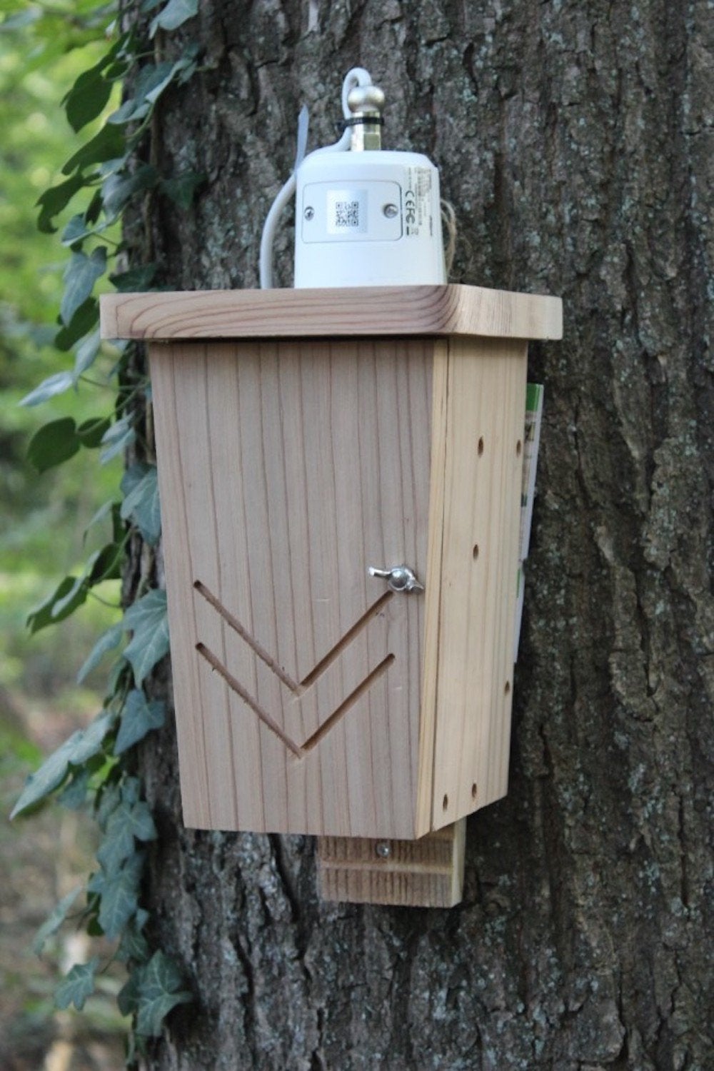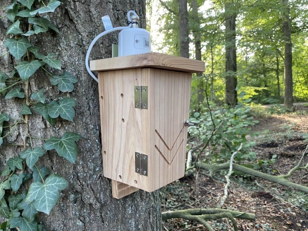 .CaptureWILD nestkast met ingebouwde digitale camera Deze in Nederland handgemaakte vleermuis nestkast is reeds voorzien van de camera, u hoeft zelf niets te monteren. Het aansluiten van de nestkast op uw router/modem is plug en play en wordt ondersteund door een eenvoudige handleiding. Naast het live bekijken van de beelden kunt u ook de beelden terugkijken welke de camera automatisch voor u opslaat op het interne geheugen. Digitale IP netwerk camera. Bewegingsdetectie, beelden worden enkel bij beweging opgeslagen. 1080P Full HD resolutie. Beelden op uw telefoon live en terug kijken, wáár ook ter wereld. Infrarood nachtzicht onzichtbaar licht voor mens en dier, het beeld schakelt over naar zwart/wit in de nacht. U hoeft geen IT specialist te zijn om deze camera aan te sluiten, de handleiding loodst u stap voor stap door het eenvoudige proces. De camera wordt direct op uw router / modem aangesloten waardoor u, waar u ook bent, de beelden kan raadplegen mits uw telefoon op dat moment een werkende internetverbinding heeft. Dit kan WiFi of 4G/5G zijn. Voor de installatie heeft u enkel uw router/modem nodig en één vrij stopcontact nabij uw router/modem. Er hoeft geen stopcontact te worden voorzien bij de nestkast, de stroom en het beeld lopen beiden over dezelfde dunne kabel. Tijdens het bestellen selecteert u de gewenste kabellengte; deze kabel komt tussen de nestkast en uw router/modem. Wij bieden u kabels aan tot 100 meter. indien u een langere afstand wenst te overbruggen óf het is niet mogelijk met deze kabel vanaf de nestkast bij uw router/modem te komen adviseren wij u contact met ons op te nemen, we zullen u dan een oplossing op maat bieden. Wij hebben een oplossing op maat voor ieder scenario. CaptureWILD is de eerste nestkastleverancier die nestkasten op de markt heeft gebracht met een digitale IP camera i.p.v. een analoge camera. Waarom is digitaal beter? Digitaal heeft vele voordelen ten opzichte van de traditionele analoge camera een nestkast met een inmiddels verouderde analoge camera kunt u herkennen aan de bekabeling, deze heeft een witte, rode en gele stekker. Een hogere beeld resolutie scherper beeld. Ingebouwde recorder. Beelden zijn op uw telefoon te bekijken. Perfect nachtzicht waarbij de camera automatisch overschakelt naar zwart/wit beeld om een hoger contrast te bieden. De beelden zijn gekoppeld aan uw netwerk hierdoor kunt u overal ter wereld uw beelden kunt bekijken. Een digitale camera heeft bewegingsdetectie en neemt alleen op bij beweging. Beelden zijn op uw telefoon te bekijken.