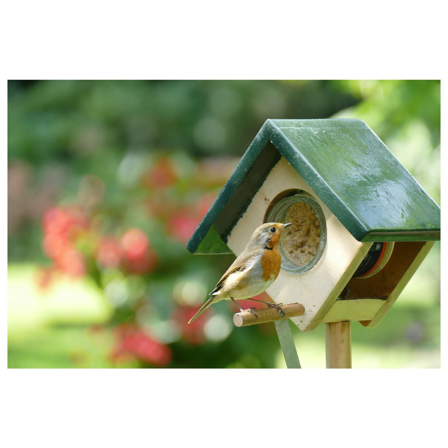 De Wildbird Cork pindakaaspothouder met wip voorkomt dat grote vogels de pindakaas opeten! Als zij namelijk plaatsnemen op het stokje van deze houder kantelt dit naar achteren en kunnen ze niet meer bij het voer. De kleine en lichtere vogels kunnen wel blijven zitten en heerlijk eten van de pindakaas. Doe de pindakaaspot achter in de houder en hij zit stevig vast, waardoor deze er niet zomaar uit kan vallen. De Cork pindakaaspothouder wip heeft een afmeting van 19x20x136 cm. Deze houder is gemaakt in samenwerking met de Vogelbescherming. Door deze aankoop te doen wordt er een deel gedoneerd aan de Vogelbescherming, de organisatie voor bescherming en behoud van de natuurgebieden in Nederland. Pindakaas is een favoriete voedselbron voor jouw tuinvogels. Het geeft veel energie en kan het hele jaar door gegeven worden. 's Winters is het een goede brandstof om de lichaamstemperatuur op peil te houden. In het voorjaar en in de zomer, hang/zet je deze pot niet in de volle zon. De oudervogels zijn druk bezig met het (op)voeden van de kleintjes n dat kost ook veel energie. Zij eten vaak zelf de pindakaas en gaan dan weer op jacht naar insecten en anders voedsel voor de jonge vogels. Vogels zijn prima in staat om zelf hun menu samen te stellen. In het najaar begint de opbouw van het vetlaagje weer, zodat ze er tijdens de koude dagen weer tegenaan kunnen.