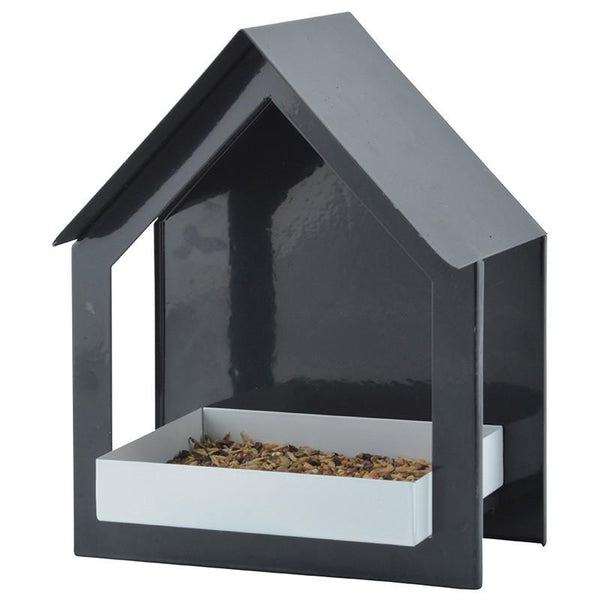 Muurvoedertafel in antraciet met witte voerschaal. Deze wandvoedertagel heeft een trendy uitstraling en kan gemakkelijk aan muur of schutting worden bevestigd.