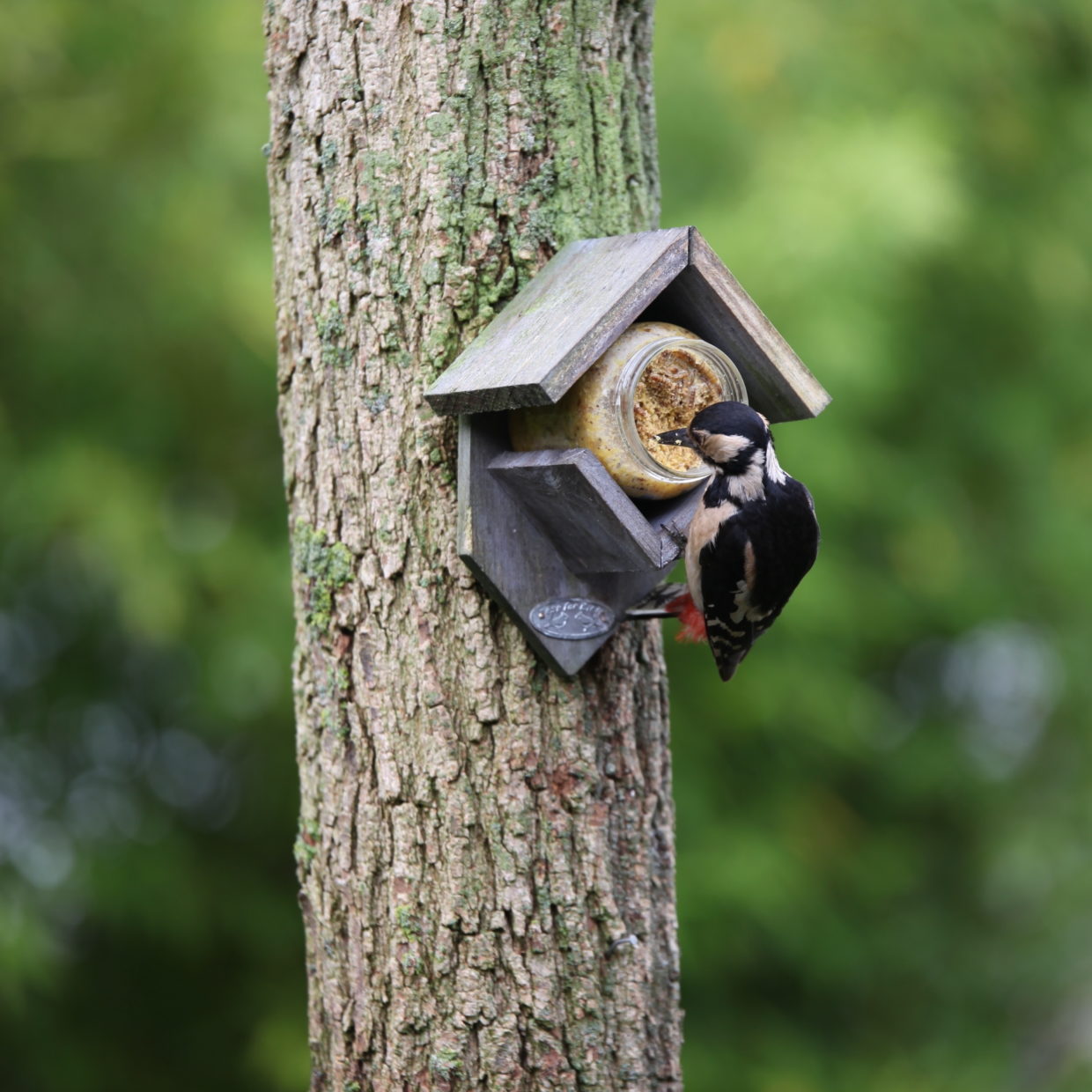 Vogelpindakaas is voor onze gevleugelde vrienden een ware lekkernij! In geen enkele tuin mag een pindakaashouder ontbreken. Deze houder uit verweerd hout biedt de mogelijkheid om een pindakaaspot te plaatsen. Met dit voederartikel worden acrobatische vogels aangetrokken zoals: Mezen, Mussen, Boomklevers en Spechten.