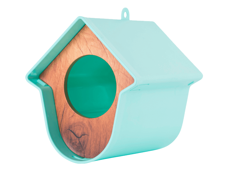 “Hallo, ik ben Evie!” Graag vertel ik iets over mezelf.Ik ben een pindakaaspothouder, maar dan net even anders. De vogels zijn dol op mij als er iets lekkers in me ligt. Zowel grote als kleine potten kun je in me kwijt door simpelweg het houten frontje te verwijderen, de pot erin te leggen en het frontje er weer op te drukken. De vogels help je het meest als je speciale vogelpindakaas voor me haalt. Gewone pindakaas is veel te zout. Maar je kunt ook ander voedsel voor vogels in me leggen. Denk aan een vetbol, pinda’s of zonnepitten. Zelfs een halve appel leg je snel en makkelijk in mij.Wat ook heel handig is aan mij is dat je me op heel veel plekken in je tuin of balkon kan hangen. Door middel van het bijgeleverde klittenband of met een schroef bevestig je me makkelijk aan bijvoorbeeld een regenpijp, horizontale- of verticale schutting of een muur. Maar je kan ook een ander leuk plekje voor me uitkiezen, want ik pas bijna overal. Eerlijk gezegd vind ik dat ik er best leuk uitzie. Ik heb mooie lijnen en je kunt ook nog eens kiezen in welke kleur je me wilt. Ik ben er in maar liefst 6 verschillende kleuren. Zo kan je de kleur kiezen die het beste bij je past. Evie, dat is mijn naam. Niet vergeten hè!