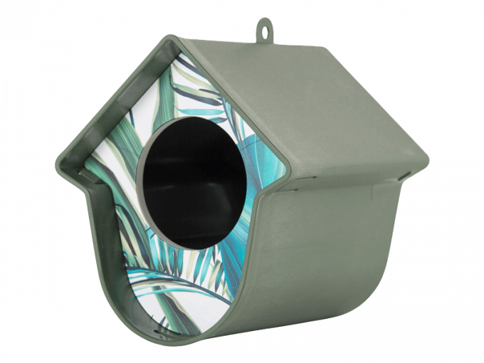 “Hallo, ik ben Evie!” Graag vertel ik iets over mezelf.Ik ben een pindakaaspothouder, maar dan net even anders. De vogels zijn dol op mij als er iets lekkers in me ligt. Zowel grote als kleine potten kun je in me kwijt door simpelweg het houten frontje te verwijderen, de pot erin te leggen en het frontje er weer op te drukken. De vogels help je het meest als je speciale vogelpindakaas voor me haalt. Gewone pindakaas is veel te zout. Maar je kunt ook ander voedsel voor vogels in me leggen. Denk aan een vetbol, pinda’s of zonnepitten. Zelfs een halve appel leg je snel en makkelijk in mij.Wat ook heel handig is aan mij is dat je me op heel veel plekken in je tuin of balkon kan hangen. Door middel van het bijgeleverde klittenband of met een schroef bevestig je me makkelijk aan bijvoorbeeld een regenpijp, horizontale- of verticale schutting of een muur. Maar je kan ook een ander leuk plekje voor me uitkiezen, want ik pas bijna overal. Eerlijk gezegd vind ik dat ik er best leuk uitzie. Ik heb mooie lijnen en je kunt ook nog eens kiezen in welke kleur je me wilt. Ik ben er in maar liefst 6 verschillende kleuren. Zo kan je de kleur kiezen die het beste bij je past. Evie, dat is mijn naam. Niet vergeten hè!