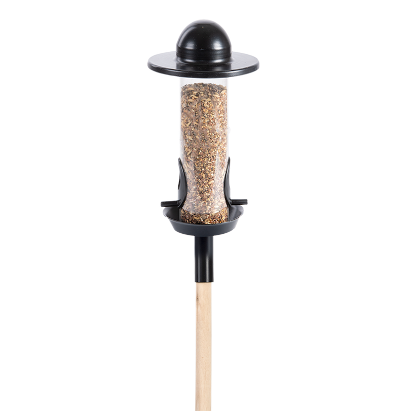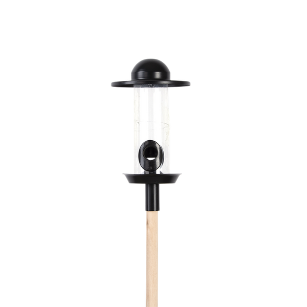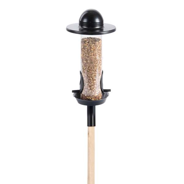 Het is niet altijd mogelijk om een voederhanger op hangen. Deze voedersilo op paal kan dan uitkomst bieden. Plaats de silo in de border of op het terras. Een speciale houder is verkrijgbaar (FB477).