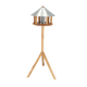 Deze vierkante voedertafel is voorzien van een silo, heeft een stalen dak en is gemaakt van eiken. De silo doseert het voer en houdt het droog. De voedertafel wordt geleverd inclusief voet.