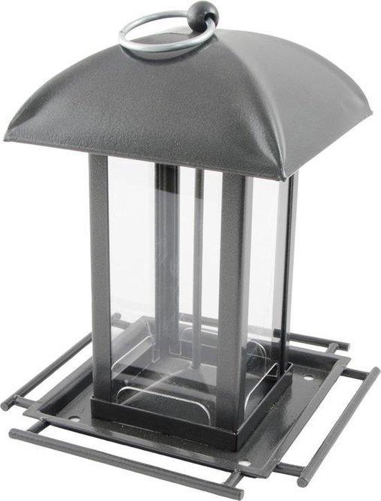 In deze zadensilo kunt u diverse zaden of zadenmixen doen om aan te bieden aan uw tuinvogels! De lichte metalen constructie is van duurzame kwaliteit en het overstekende dak zorgt ervoor dat het vogelvoer niet nat kan worden bij slecht weer. De plexiglazen vensters sluiten onder niet aan, waardoor het vogelvoer constant door kan stromen. Rondom de voedersilo kunnen vogels van de voedersilo eten.