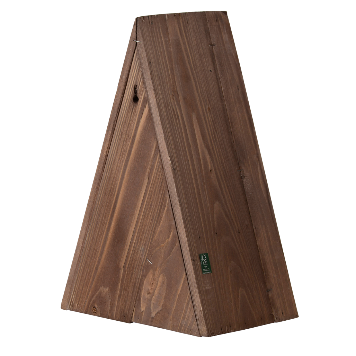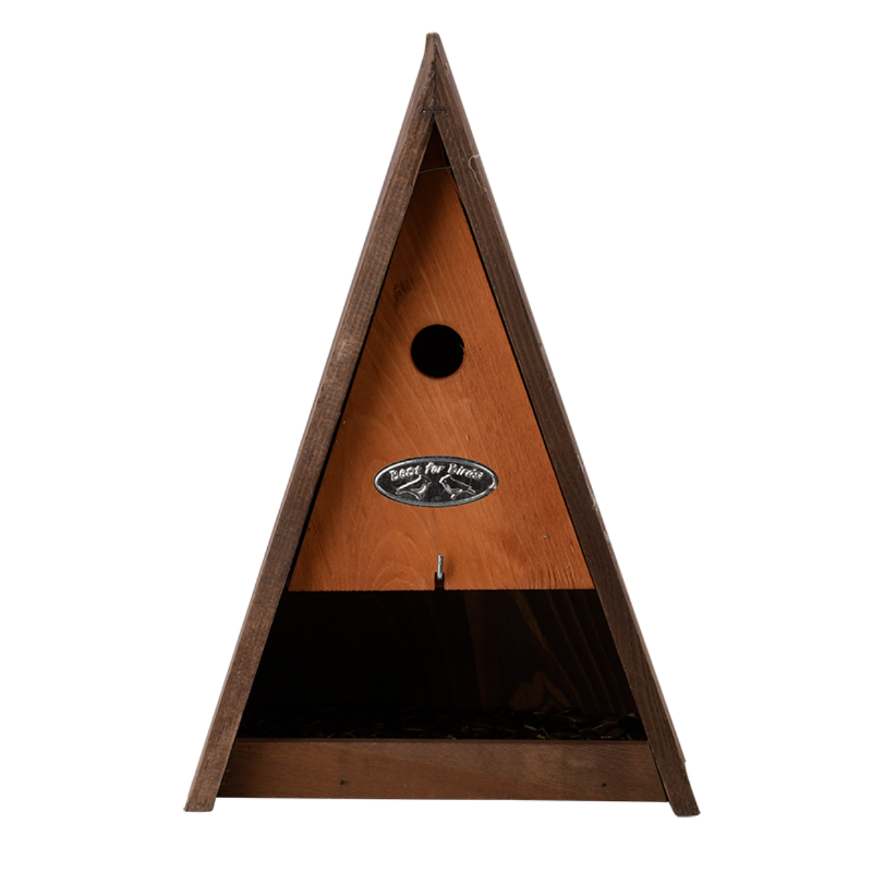 In geen enkele tuin mag een nestkast en voederplek ontbreken. Deze driehoekige combi nestkast in bruin tinten biedt de Pimpelmees een goede plek om in te nesten en om populaties van deze vogelsoort te behouden of weer terug te krijgen in een gebied. De op maat gemaakte nestkast biedt niet alleen de Pimpelmees maar ook de Kuifmees, Glanskop, Matkop en Zwarte Mees een goede plek om in te nesten. In de winter bewijst de nestkast vaak een goede dienst voor de vogels om te schuilen tegen het slechte weer.