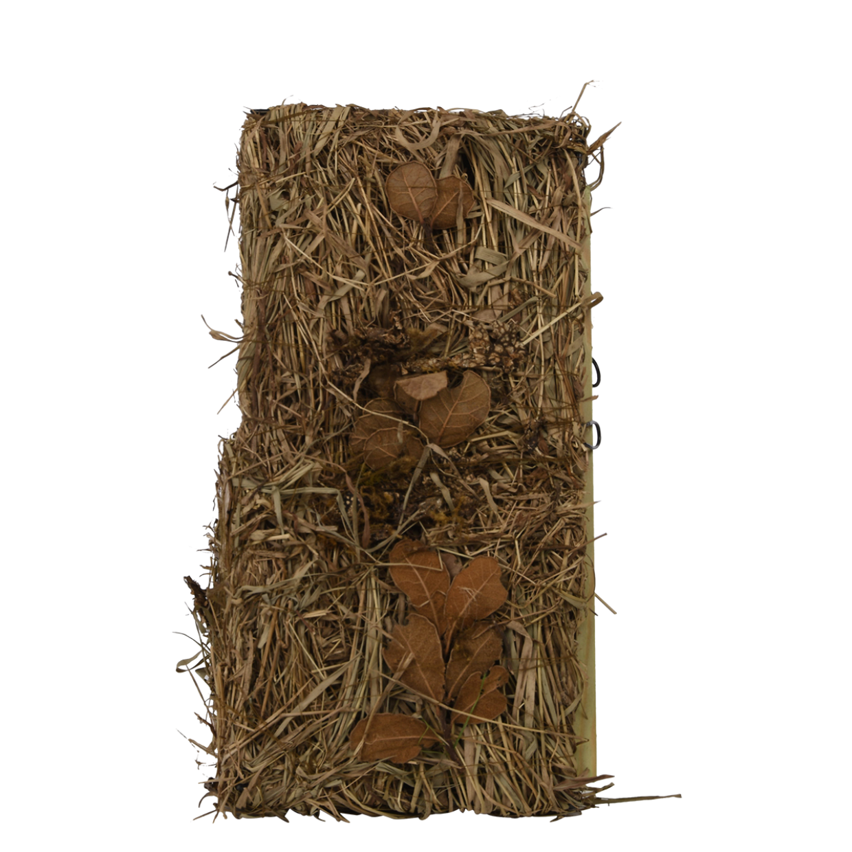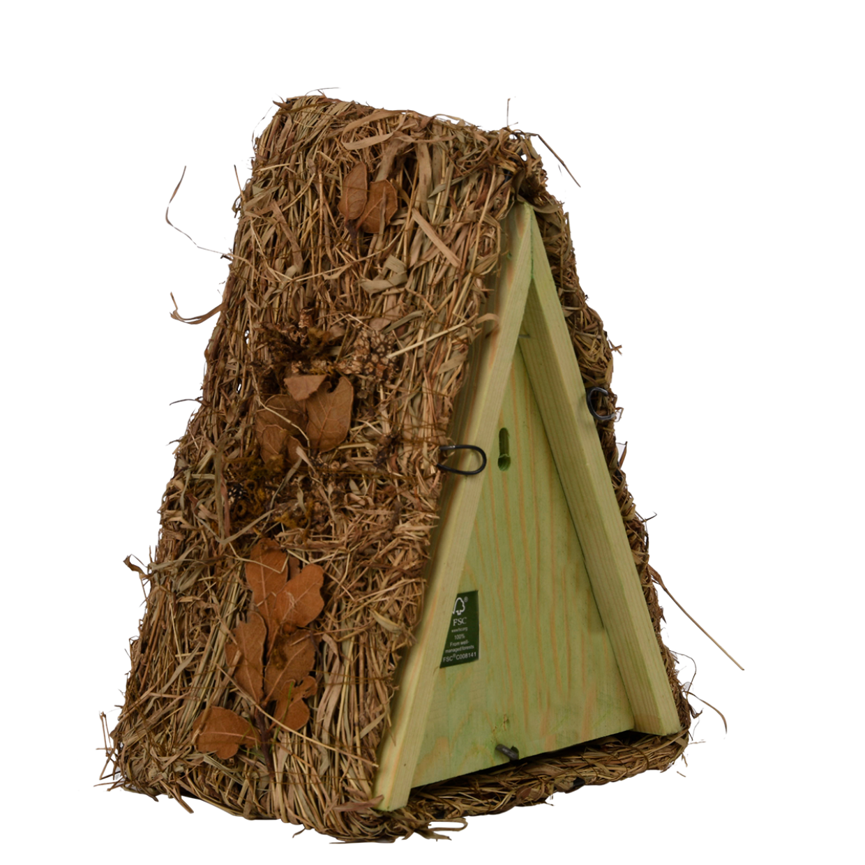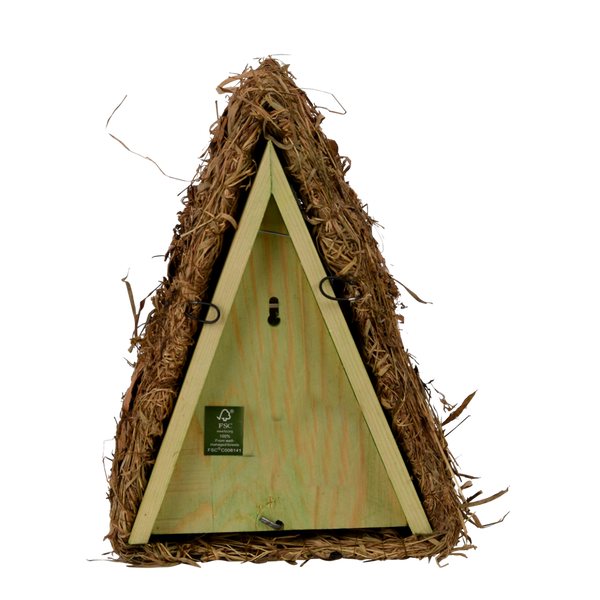 Camouflage nestkast. Deze nestkast is geschikt voor de winterkoning. Plaats de nestkast aan een boom of muur, op een hoogte tot max. 2 m, op een goed verborgen plek tussen dicht struikgewas of klimopplanten, op een rustige en enigszins beschutte plaats, dus niet pal in de zon of op de regenzijde, met een vrije aanvliegroute voor de vogel. In de winter bewijst de kast vaak goede diensten voor de vogels om te schuilen tegen het barre weer.