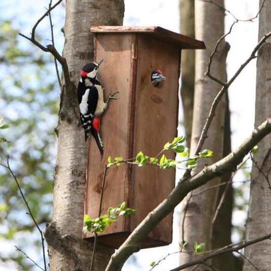 • Speciaal voor de grote bonte specht – De nestkast is specifiek ontworpen voor spechten, met een ingang die voldoet aan hun behoeften.