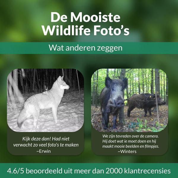 Ben jij klaar om alle dieren 100% automatisch op te nemen in hun natuurlijke habitat ?En dat op een afstandje, 24 uur per dag zonder moeite te doen? Gegarandeerd binnen één dag al de meest prachtige, unieke beelden van de ongerepte natuur direct op jouw mobiel. Met deze top wildcamera met wifi en gratis APP!