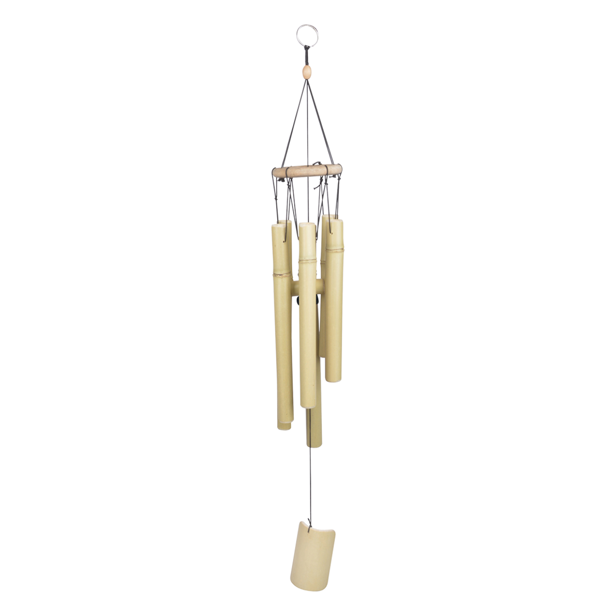 Doordat de wind de bamboe schijf in beweging zet, ontstaat er een harmonieuze en rustgevende klank. Door de koordstopper is het ook mogelijk om "uit te zetten". Bamboe is een natuurlijk materiaal, zodat elke windgong een eigen karakter heeft. Door de verschillende lengtes van de bamboe buizen, ontstaan er verschillende toonhoogtes.