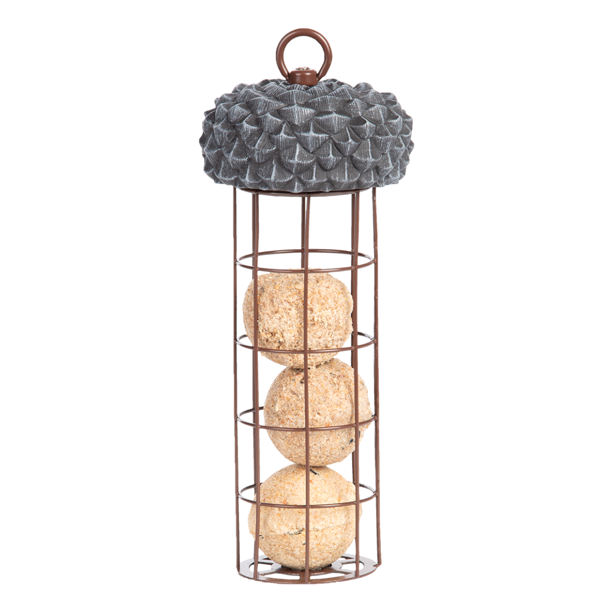 Dieser Eichel-Fettballspender ist leicht nachzufüllen. Durch Abschrauben des Rings kann der Deckel entfernt werden. Offene Struktur, leicht zugänglicher, leicht nachfüllbarer Deckel in Form einer Eichelkappe