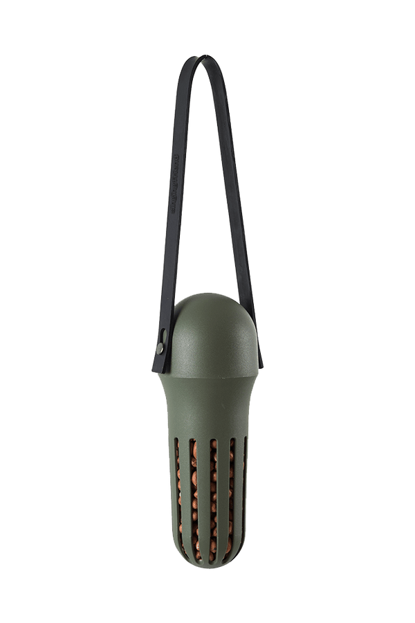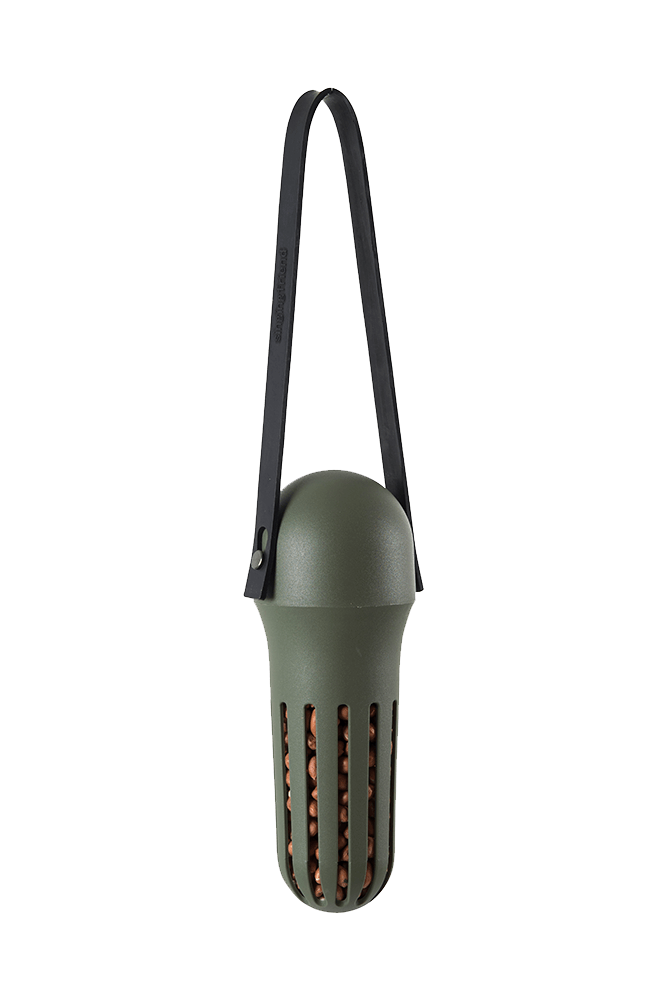 Max lässt sich schnell und einfach nachfüllen. Mit dem stabilen Gurt können Sie das Produkt im Garten oder auf dem Balkon aufhängen. Das Nachfüllen ist ganz einfach: Schrauben Sie den unteren Teil ab und füllen Sie den Behälter mit Vogelfutter. Max ist stilvoll und praktisch. Aufgrund der Schlitzform können nur kleine Vögel aus dem Futterspender fressen.