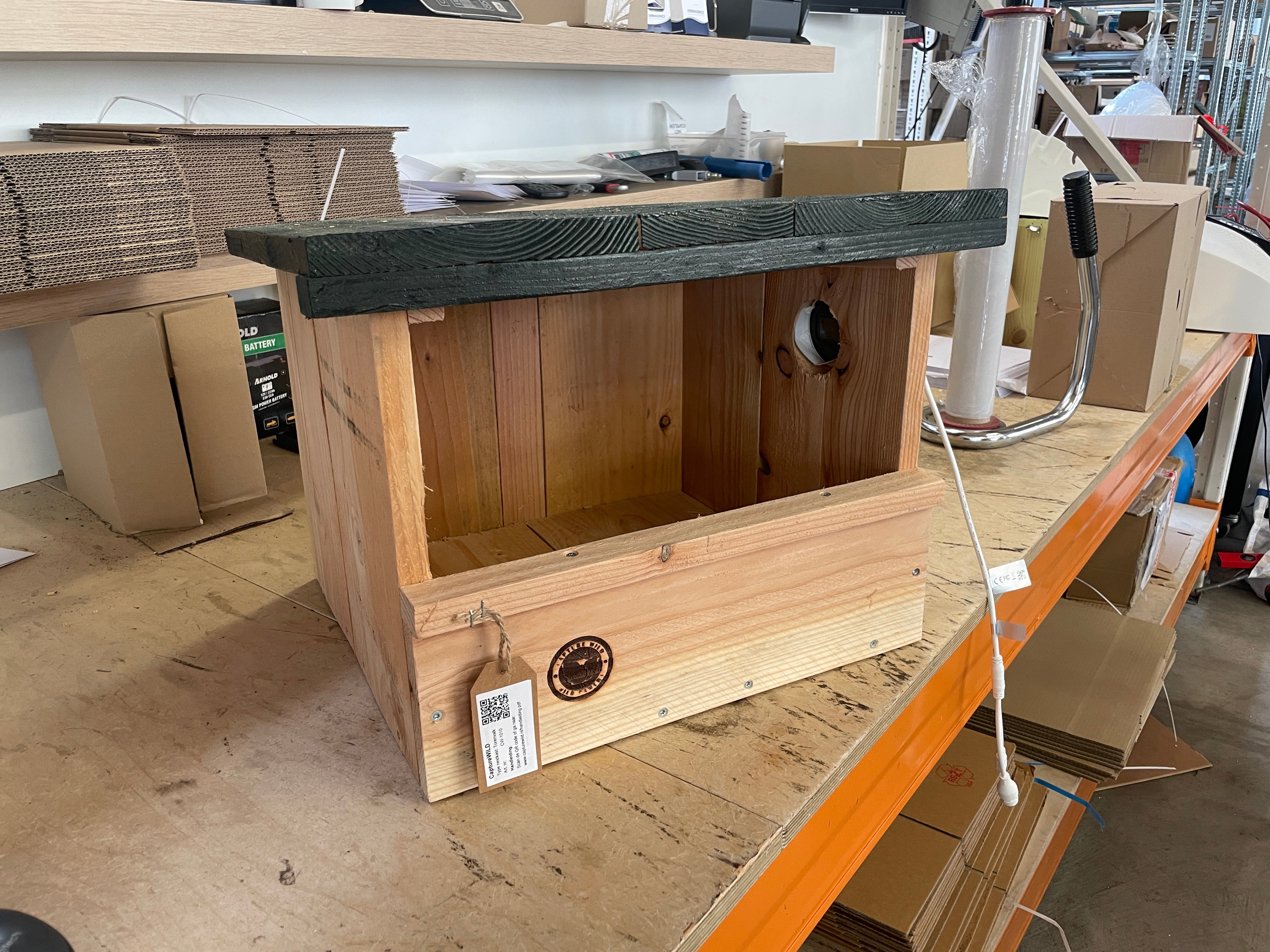 CaptureWILD Nistkasten mit integrierter Digitalkamera. Dieser in den Niederlanden handgefertigte Turmfalken-Nistkasten ist bereits mit einer Kamera ausgestattet. Sie müssen nichts selbst zusammenbauen. Der Anschluss des Nistkastens an Ihren Router/Modem erfolgt per Plug-and-Play und wird durch eine einfache Anleitung unterstützt. Neben der Live-Ansicht der Bilder können Sie auch die Bilder betrachten, die die Kamera automatisch im internen Speicher speichert. Digitale IP-Netzwerkkamera. Bewegungserkennung: Bilder werden nur bei erkannter Bewegung gespeichert. 1080P Full HD-Auflösung. Sehen Sie Bilder live und zurück auf Ihrem Smartphone – überall auf der Welt. Infrarot-Nachtsicht: Unsichtbares Licht für Mensch und Tier. Nachts wechselt das Bild auf Schwarzweiß. Sie müssen kein IT-Spezialist sein, um diese Kamera anzuschließen. Die Anleitung führt Sie Schritt für Schritt durch den einfachen Vorgang. Die Kamera wird direkt an Ihren Router/Modem angeschlossen, sodass Sie die Bilder überall abrufen können, vorausgesetzt, Ihr Smartphone verfügt über eine funktionierende Internetverbindung. Dies kann WLAN oder 4G/5G sein. Für die Installation benötigen Sie lediglich Ihren Router/Modem und eine freie Steckdose in der Nähe Ihres Routers/Modems. Es ist keine Steckdose am Nistkasten erforderlich, da Strom und Bild über dasselbe dünne Kabel laufen. Wählen Sie bei der Bestellung die gewünschte Kabellänge aus; dieses Kabel wird zwischen dem Nistkasten und Ihrem Router/Modem verlegt. Wir bieten Kabel mit einer Länge von bis zu 100 Metern an. Wenn Sie eine größere Entfernung überbrücken möchten oder Ihr Router/Modem vom Nistkasten aus nicht mit diesem Kabel erreicht werden kann, kontaktieren Sie uns bitte. Wir bieten Ihnen dann eine maßgeschneiderte Lösung. Wir haben für jedes Szenario eine maßgeschneiderte Lösung. CaptureWILD ist der erste Nistkastenanbieter, der Nistkästen mit einer digitalen IP-Kamera anstelle einer analogen Kamera auf den Markt gebracht hat. Warum ist digital besser? Digital bietet viele Vorteile gegenüber herkömmlichen analogen Kameras. Sie erkennen einen Nistkasten mit einer mittlerweile veralteten analogen Kamera an der Verkabelung: Er hat einen weiß-rot-gelben Stecker. Eine höhere Bildauflösung, ein schärferes Bild. Eingebauter Rekorder. Bilder können auf Ihrem Smartphone betrachtet werden. Perfekte Nachtsicht, bei der die Kamera automatisch auf Schwarz-Weiß-Bild umschaltet, um einen höheren Kontrast zu erzielen. Die Bilder werden mit Ihrem Netzwerk verknüpft, sodass Sie sie überall auf der Welt ansehen können. Eine Digitalkamera verfügt über eine Bewegungserkennung und zeichnet nur bei Bewegung auf. Die Bilder können auf Ihrem Telefon angezeigt werden.
