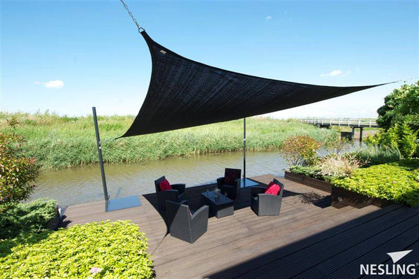 Sehr starkes HTPE-Gewebe mit Knoten Keine störenden Sonnenschirmständer mehr Kann die ganze Saison über draußen bleiben Bis zu 95 % Schutz vor schädlicher UV-Strahlung Bietet Kühlung bei warmem Wetter Leicht zu reinigen Schimmelresistent Einfach zu installieren