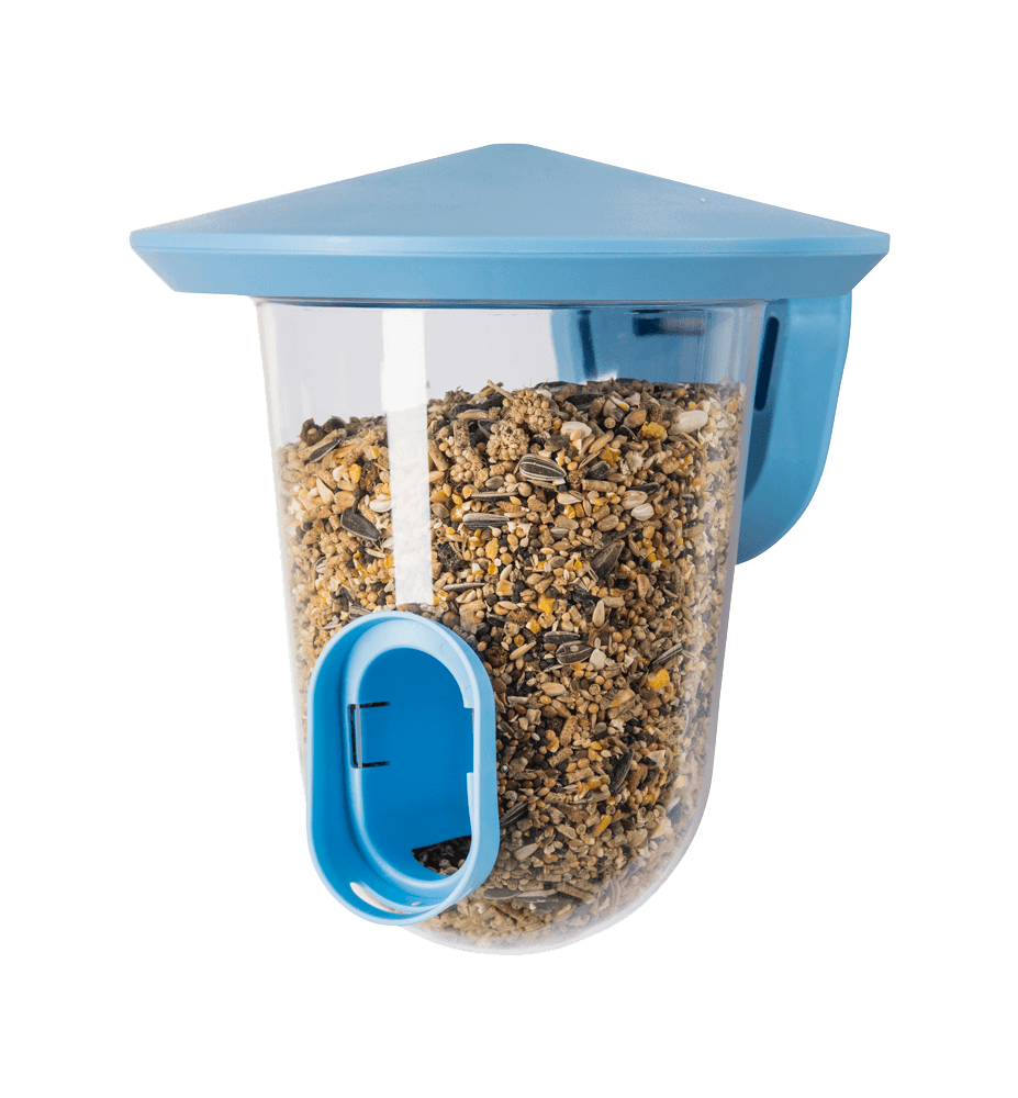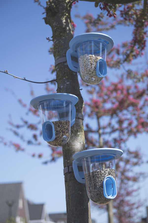Sowohl das Design als auch die Funktion des feedR sind durchdacht. Sie sehen genau, wie viel Futter sich darin befindet. Befestigen Sie das Produkt mit dem mitgelieferten Klettverschluss oder mit Schrauben. Auch das Reinigen oder Nachfüllen des feedR ist einfach: Der Boden lässt sich mit einem Handgriff lösen und befestigen.
