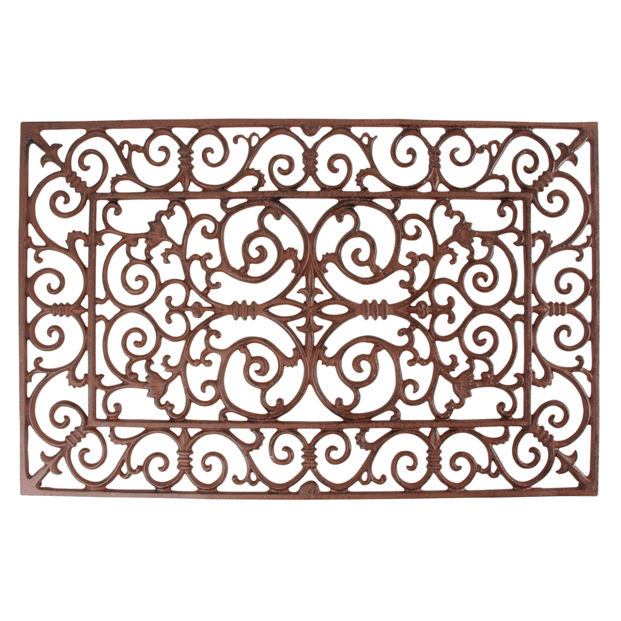 This rectangular cast iron doormat creates a classic entrance. The mat has a Victorian pattern with graceful curls and is individually hand cast according to centuries-old craftsmanship and tradition.
