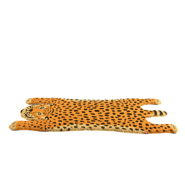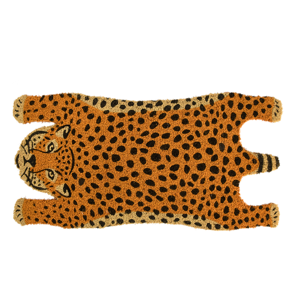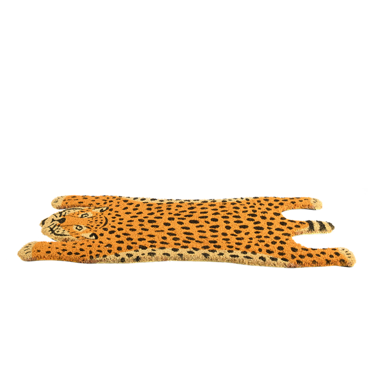 Brighten up your entrance with this cheetah coconut mat. The strong coconut fibres are ideal for cleaning the soles of shoes and boots. The mat stays in place thanks to the PVC backing.