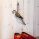A fun and practical keyring that helps keep your keys organized. The butterfly is hand carved from a single piece of wood and hand painted using only eco-friendly paints. It is attached to a metal ring.