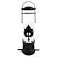The bird feeder bird is a porcelain bird with a metal stand. You can stick it in the ground and put food in the bird. The birds then have a place at all times where they can get their food.
