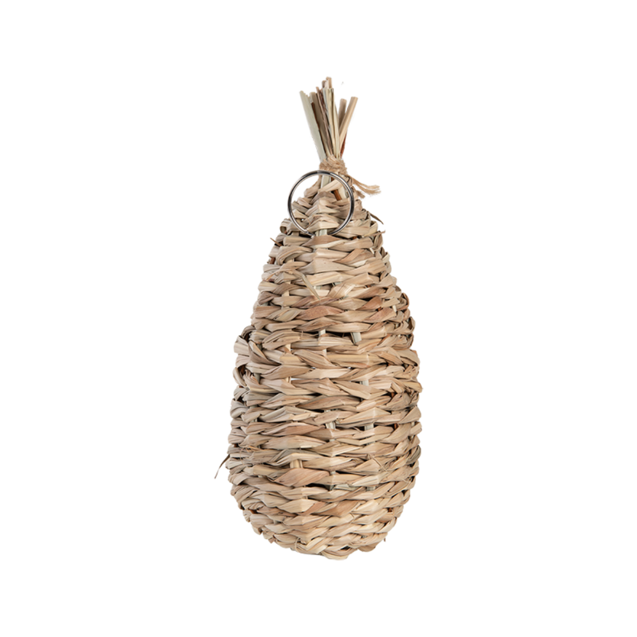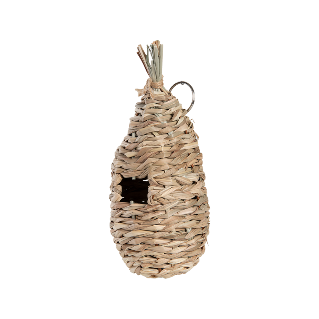 height up to max. 2 m, in a well-hidden spot between dense bushes or climbing plants, in a quiet and somewhat sheltered place; so not directly in the sun or on the rainy side, with a free flight path for the bird. In the autumn the nest pouch can be cleaned. In the winter the nest pouch is used by the birds to shelter during bad weather.- suspension ring on the back