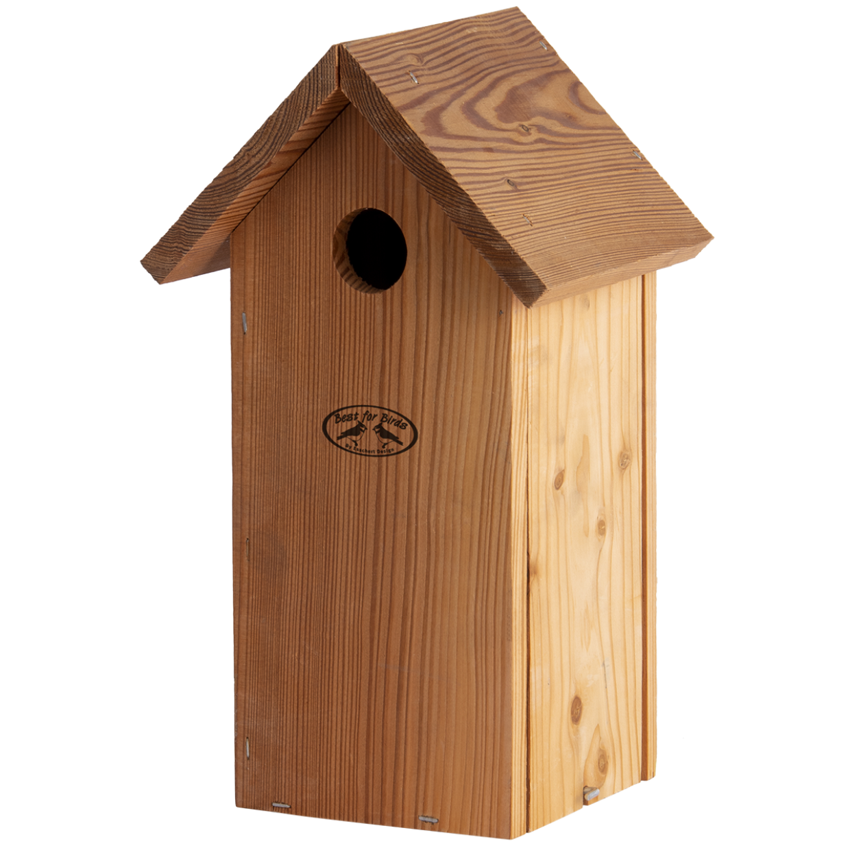 This nesting box made of Douglas fir offers the great tit a nice place to nest. In addition, the nesting box is used as a shelter during bad weather conditions.