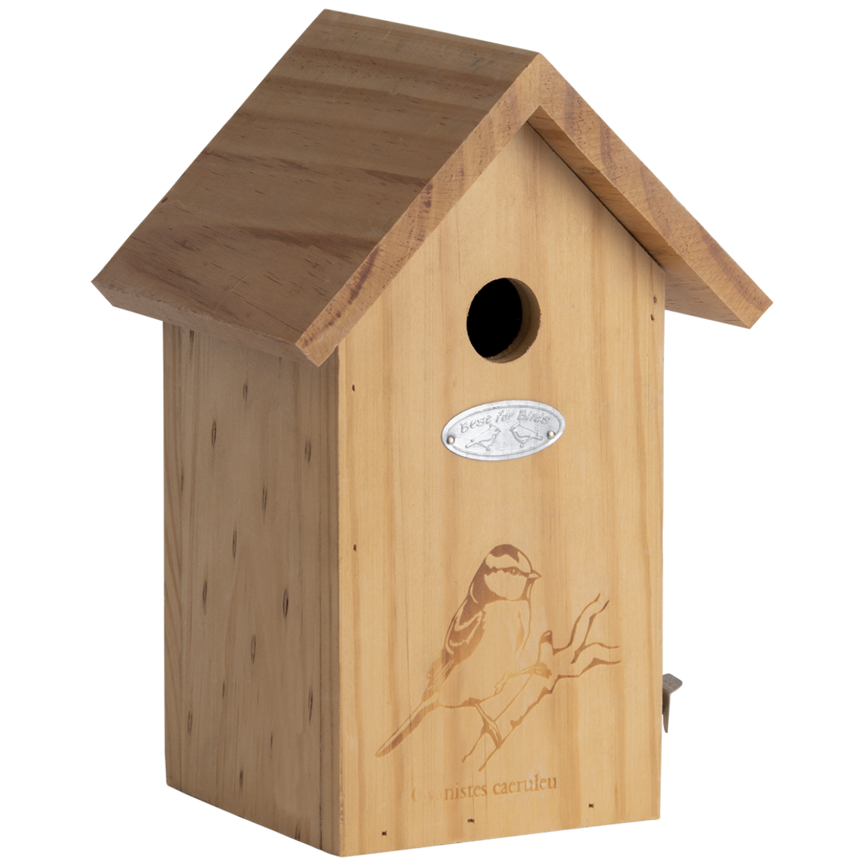 The burned-in silhouette and the Latin name already indicate that this nest box is intended for the Blue Tit. It offers a good place to nest and to maintain or restore populations of this bird species in an area. In addition, this custom-made nest box also offers the Crested Tit, Marsh Tit, Crested Tit and Black Tit a good place to nest. In winter, the nest box often proves to be a good service for the birds to shelter from bad weather. A good place to hang the box is a quiet and somewhat sheltered place, so not directly in the sun or on the rainy side, with a free flight path for the bird. Autumn is the best time to clean the nest box. • keyhole opening • door on the side • 27 mm diameter flight opening • suitable for Blue Tit, Crested Tit, Marsh Tit, Crested Tit, Black Tit