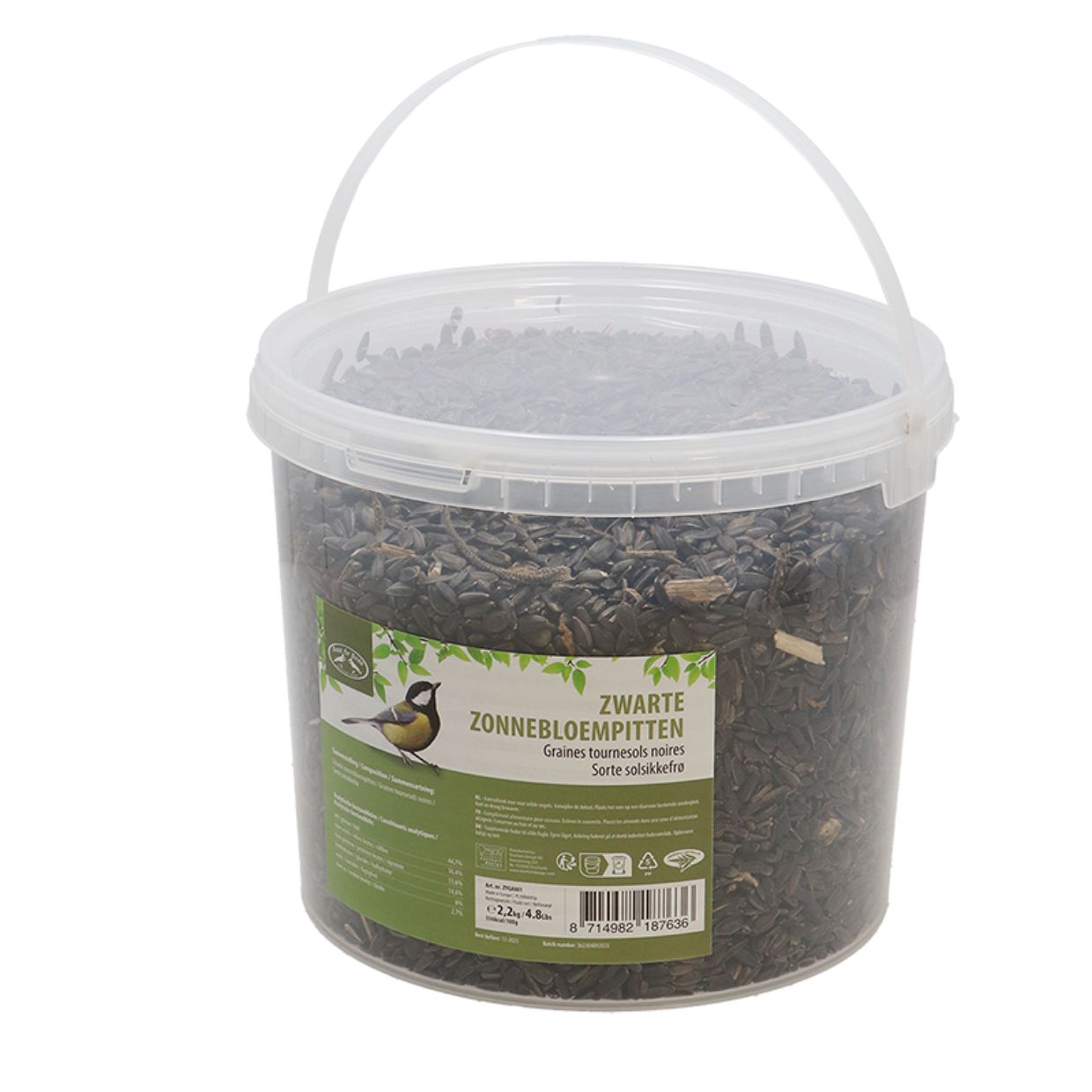 Zoekwoorden: zwarte zonnebloempitten 2,2 kg, zonnebloempitten emmer, vogelvoer zonnebloempitten, vogelvoer winter, voederhuis, voedersilo, tuinvogels voeren.