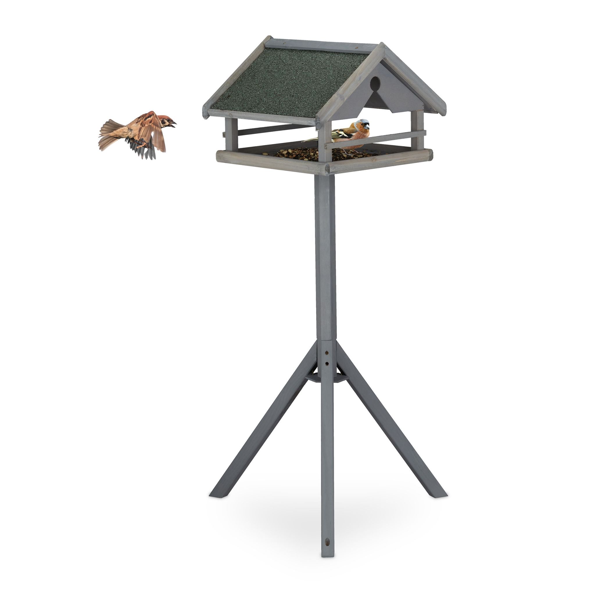 Grey bird feeder on stand